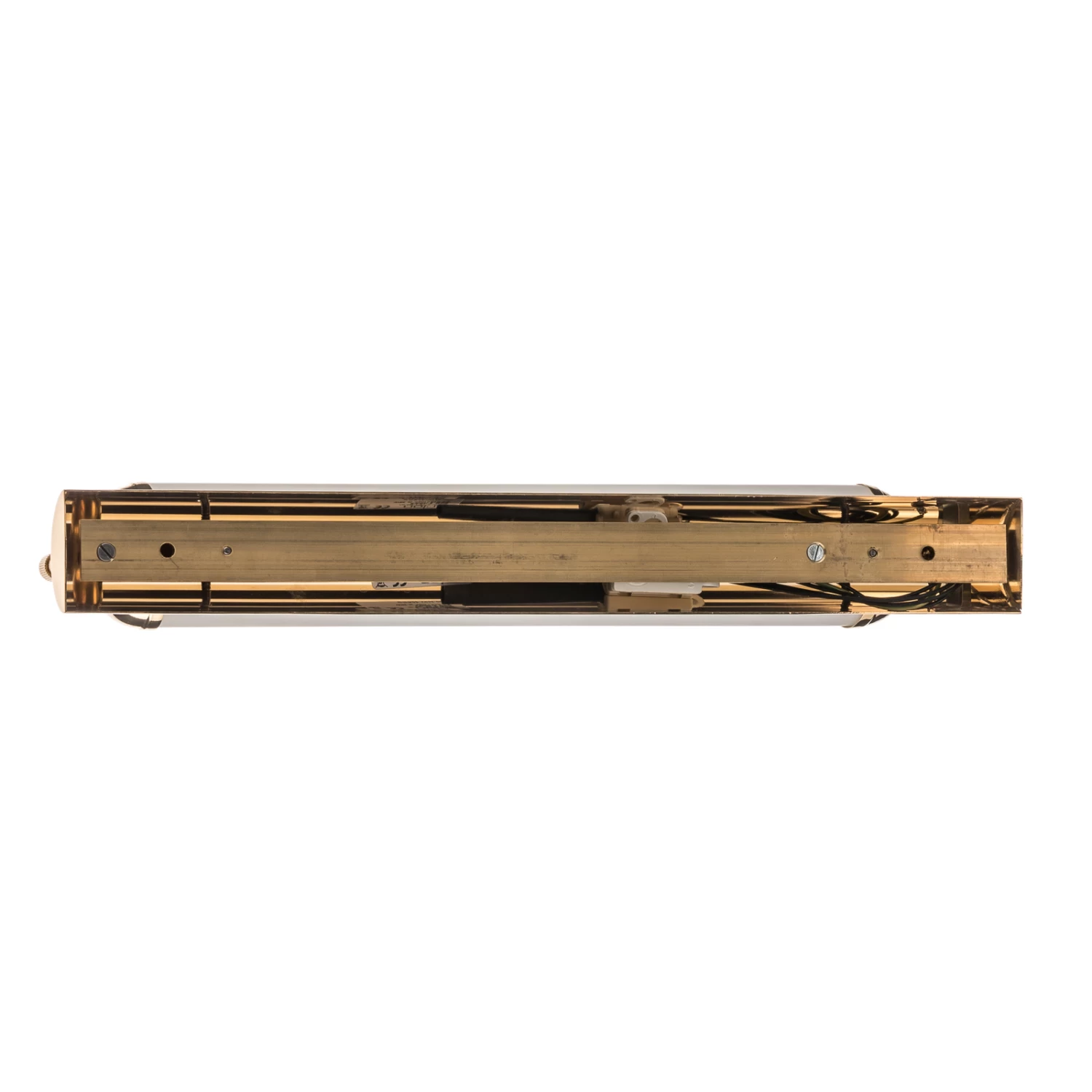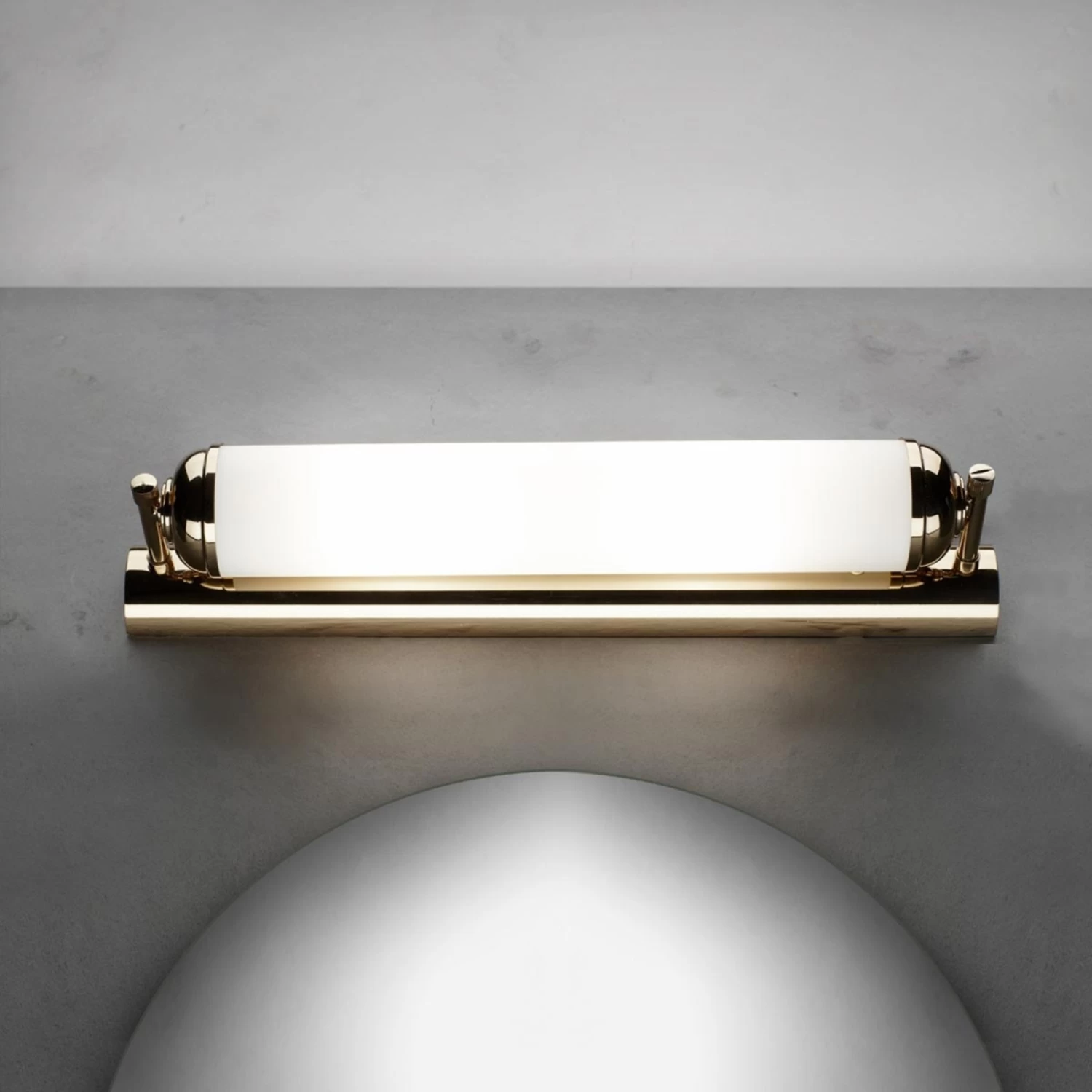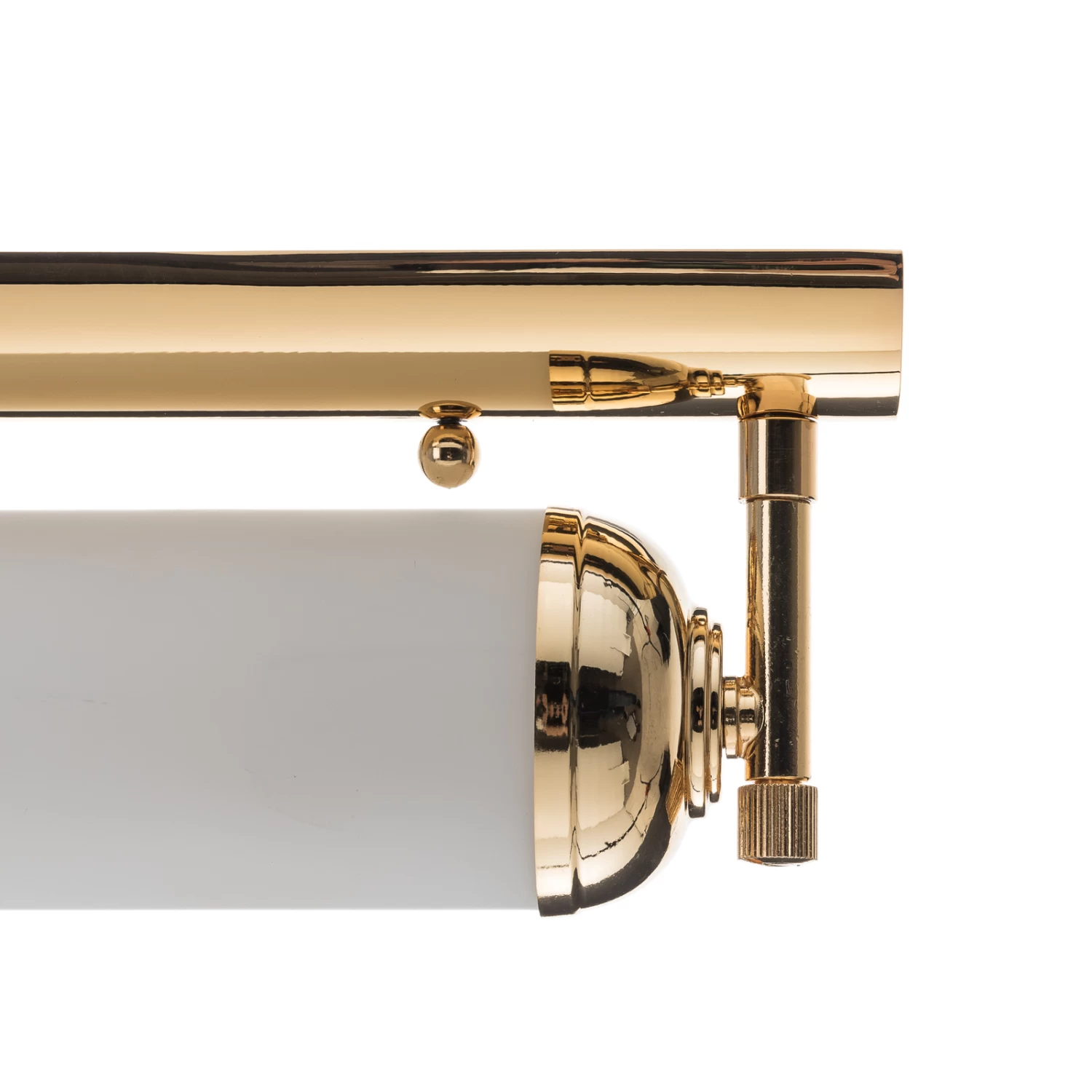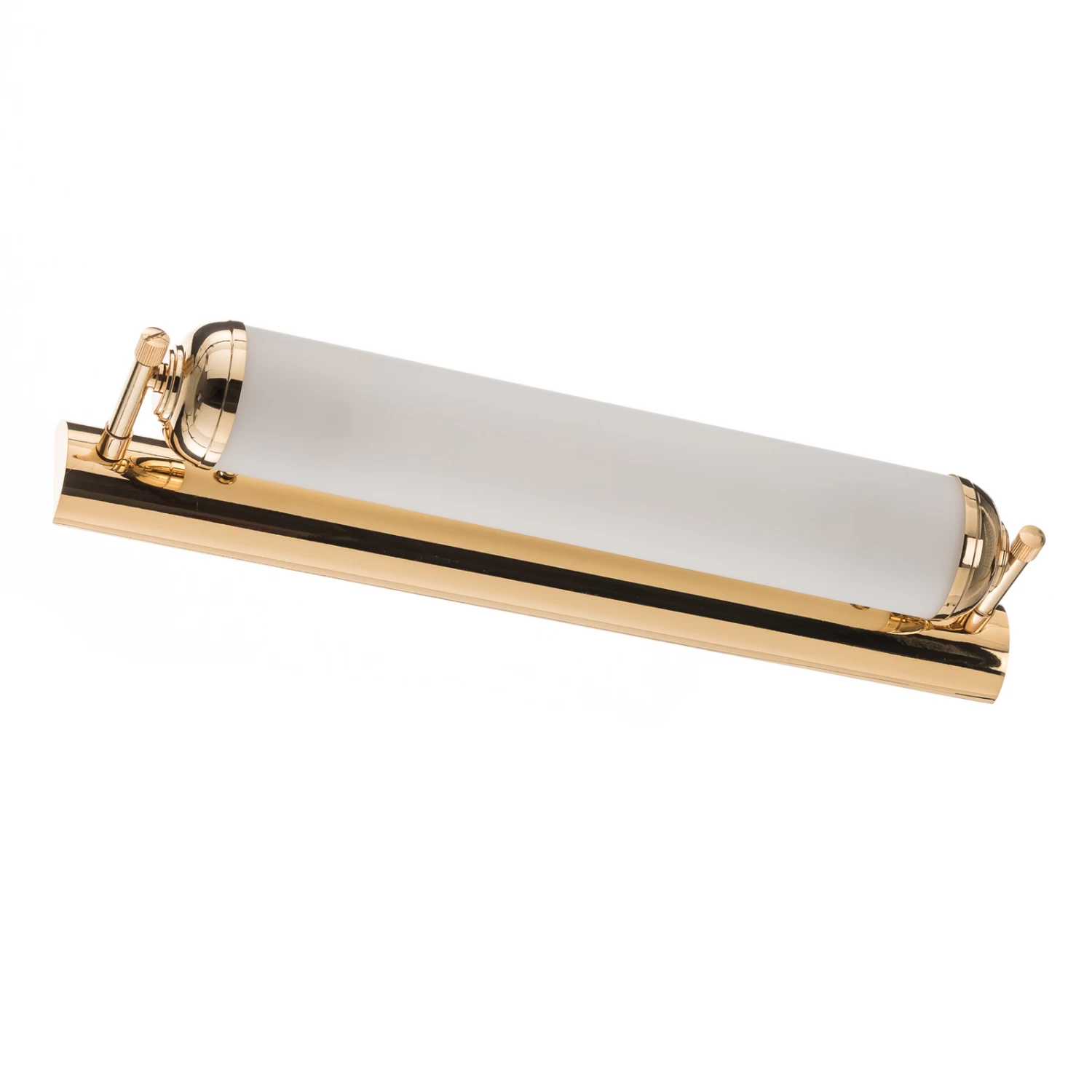 L’applique pour miroir à 2 lampes Elida représente une solution d’éclairage pratique qui s’installe aussi bien horizontalement que verticalement. A côté d’un miroir de salle de bain, l’applique diffuse une lumière homogène, anti-éblouissante et sans ombre. Vous obtiendrez une ambiance harmonieuse et très agréable en installant une applique à gauche et à droite du miroir. La partie métallique du luminaire porte une belle finition dorée 24 carats. La particularité de cette applique pour miroir: son tube de verre soufflé bouche.