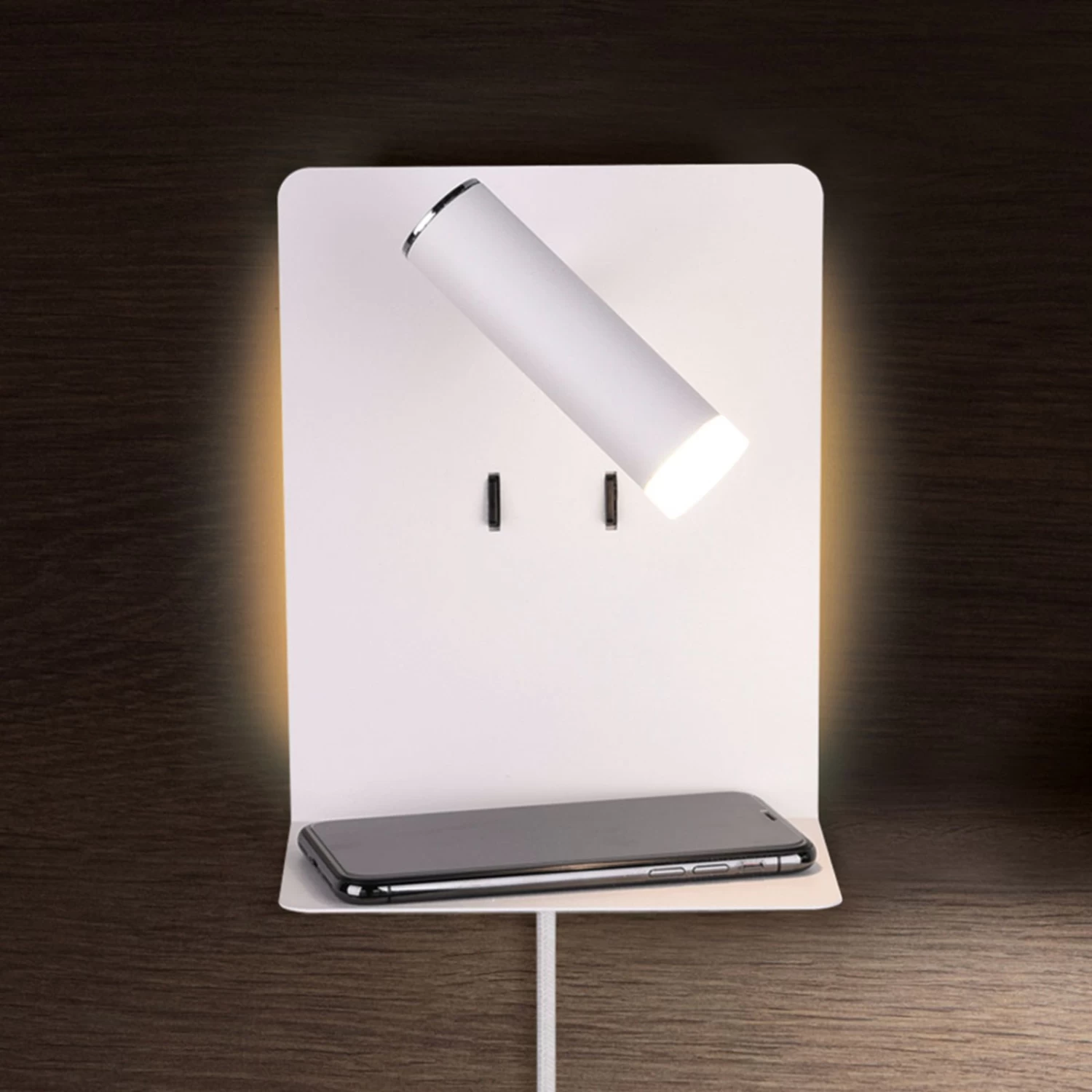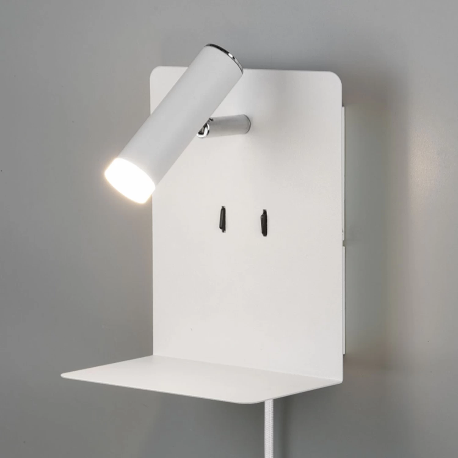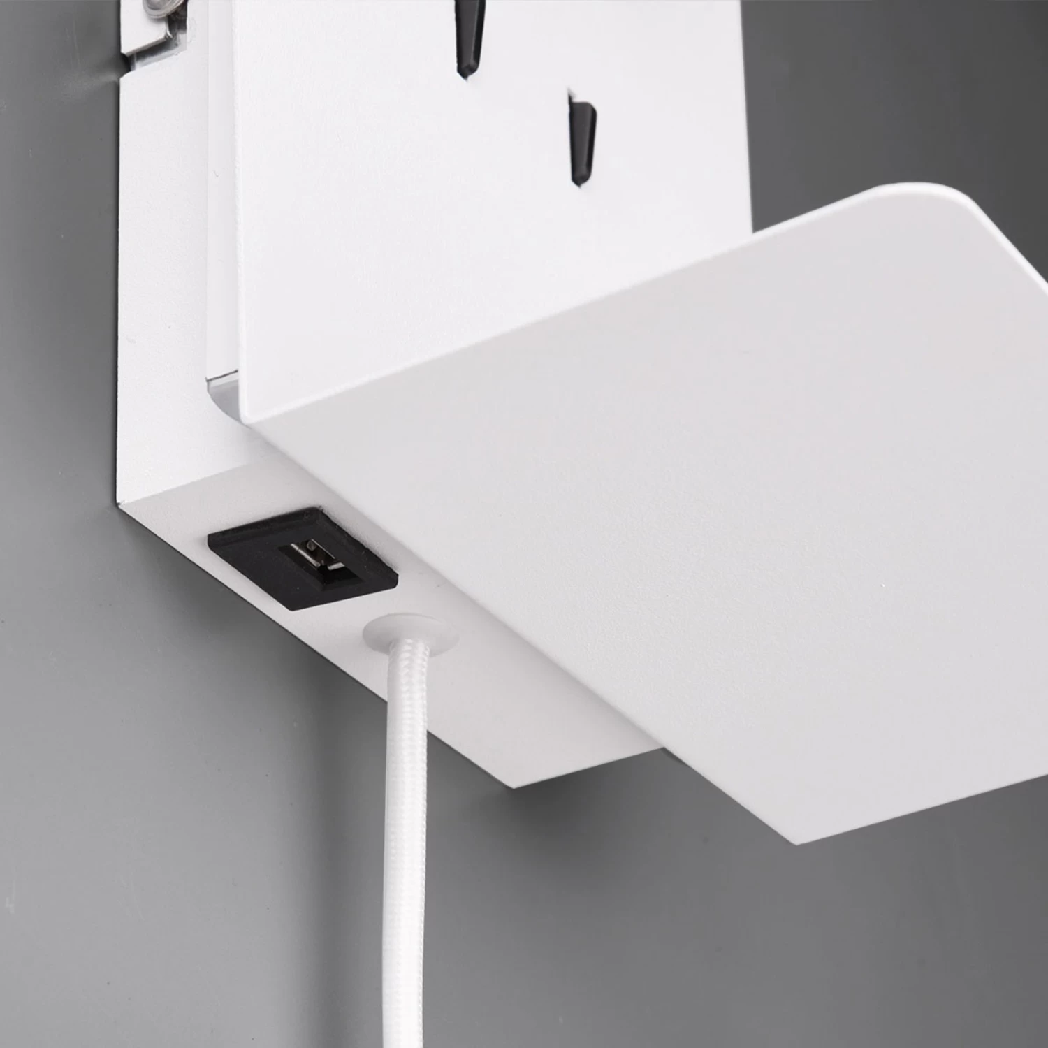 L’applique murale LED Element offre un spot réglable et un rétroéclairage confortable, deux interrupteurs permettant d’allumer séparément les deux variantes de lumière. L’applique murale avec tablette est en outre équipée d’un port USB, ce qui permet de poser le téléphone portable et de le recharger en même temps. L’applique LED moderne Element est équipée d’un câble avec fiche, de sorte qu’elle peut être branchée sur une prise de courant. Si l’on démonte le câble, elle peut aussi être raccordée directement à la prise murale grâce à Flex-Connect. Element est une source de lumière idéale à installer près du lit.
