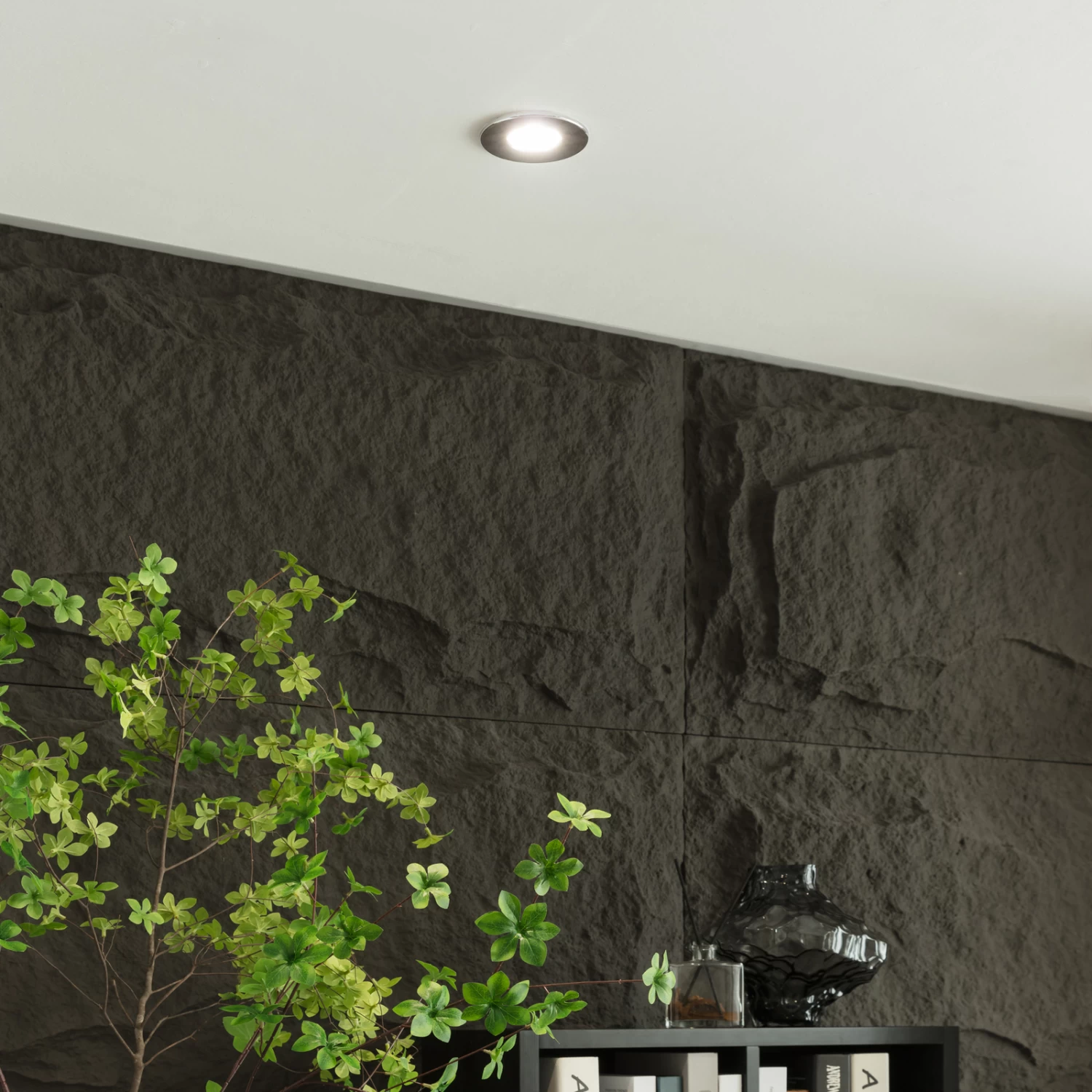 Elmon peut bien être utilisé dans les salles de bains avec sa finition de couleur chrome que l’on trouve souvent aussi sur les robinets. En outre, l’indice de protection IP65 offre une protection suffisante pour utiliser le downlight à LED dans des pièces humides, car le luminaire est bien étanche lorsqu’il est encastré dans le plafond. La forme ronde est assez universelle et convient à de nombreux environnements. De plus, on a la possibilité de régler la couleur de la lumière comme on le souhaite. Un interrupteur DIP se trouve à cet effet sur le boîtier et peut être activé avant le montage. Il est possible de choisir entre quatre couleurs de lumière différentes, de sorte que l’une d’entre elles s’adapte de manière optimale à l’environnement et à l’application. La technique LED promet un éclairage efficace et peu gourmand en énergie et Elmon peut depuis longtemps être utilisé non seulement dans des locaux privés, mais aussi dans un environnement commercial – avec plusieurs luminaires de la série afin de garantir un éclairage efficace de l’environnement.
