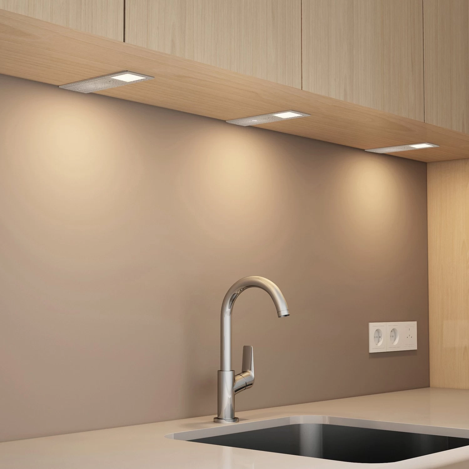 Nortra a une touche de modernité dans son design et s’intègre donc bien dans les intérieurs contemporains où un certain purisme est souhaité. Le corps des luminaires sous l’armoire est en aluminium de forme rectangulaire et une zone d’affichage au-dessus des lampes LED, ce qui permet une distribution de la lumière plus douce car elle est blanche. Sur l’une des trois lampes, il y a un interrupteur à effleurement qui permet d’allumer et d’éteindre les lumières et de les tamiser. Cela augmente le confort d’éclairage et la lumière peut être facilement montée sous les placards de la cuisine et de la salle de bain ou sous les étagères. Le luminaire sous l’armoire avec ses LED fournit une lumière blanche universelle et éclaire de manière fiable les plans de travail dans la cuisine ou d’autres pièces avec une lumière claire et efficace.