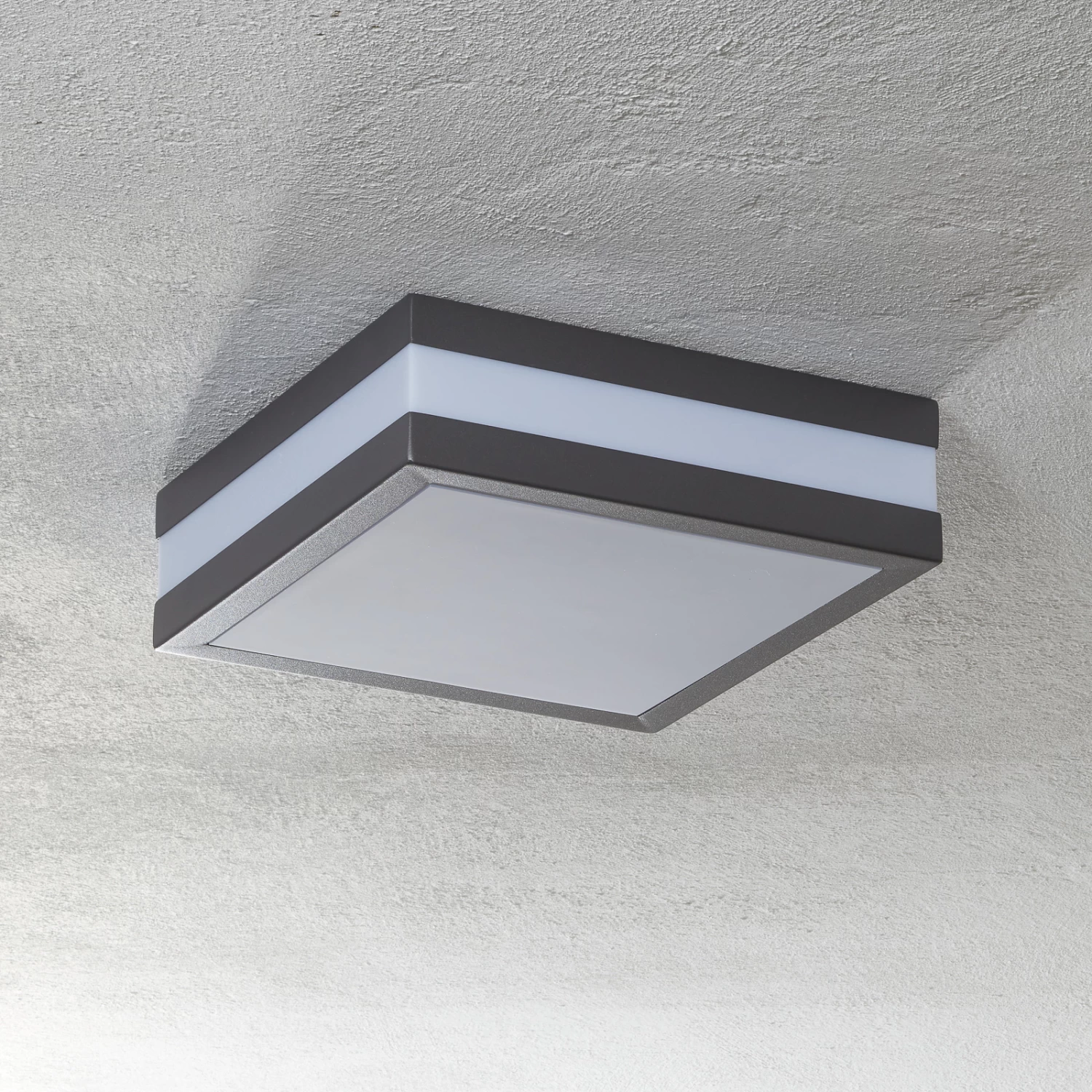 Le luminaire d’extérieur Matteo est conçu pour être monté au plafond. Il est protégé par un indice de protection IP44 contre les éclaboussures d’eau, ce qui le rend adapté à une utilisation en extérieur. Son cadre entoure le diffuseur en plastique blanc et est fabriqué en acier inoxydable de couleur anthracite – ce qui donne au plafonnier un aspect élégant et de haute qualité et lui permet également de fournir une lumière non éblouissante. Le cadre crée un motif lumineux discret qui se distingue dans l’environnement et crée une ambiance attrayante. Avec Matteo, les carports, les garages, les auvents, les façades ou même les terrasses et les balcons peuvent être idéalement éclairés.