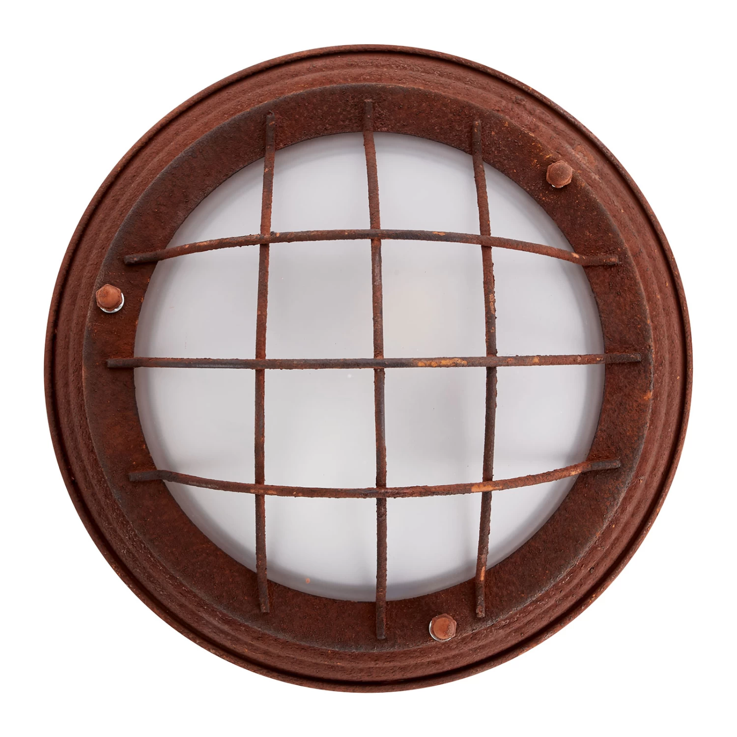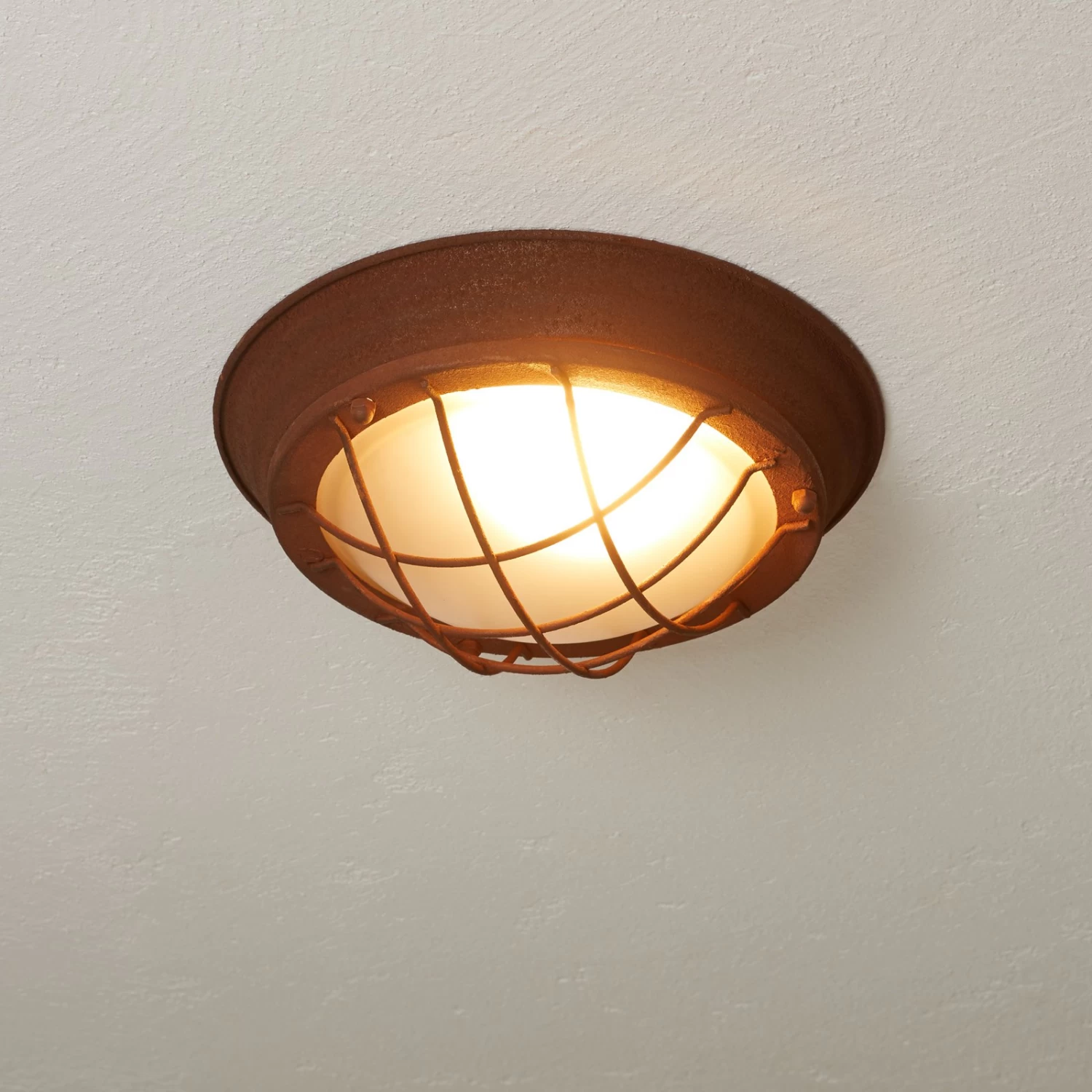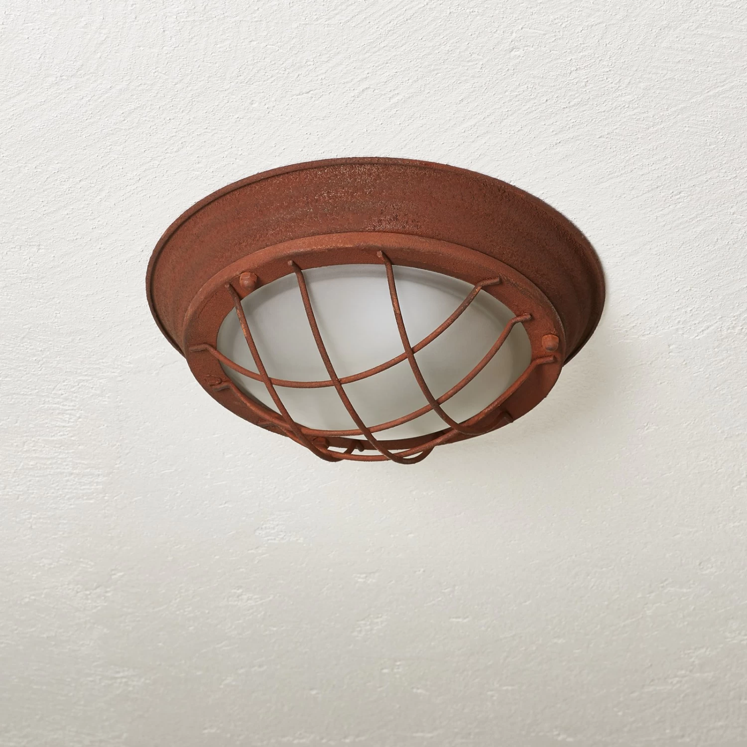 Avec sa fixation au plafond noire et aspect rouille, le plafonnier Typhoon convient au mieux pour l’éclairage de pièces rustiques et campagnardes. Le grand abat-jour en verre est entouré d’une grille protectrice en métal, qui vient souligner le caractère rustique de l’ensemble. Il diffuse une lumière douce sur une grande surface, de sorte que Typhoon garantit un éclairage général optimal dans le salon ou le couloir par exemple. Typhoon peut aussi être utilisé comme applique murale.