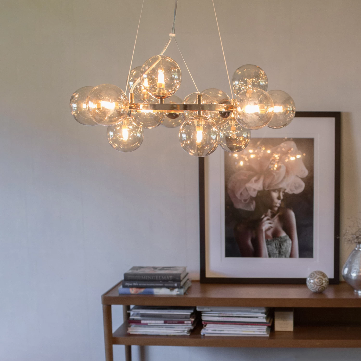 Suspension Splendor avec 15 boules en verre ambré