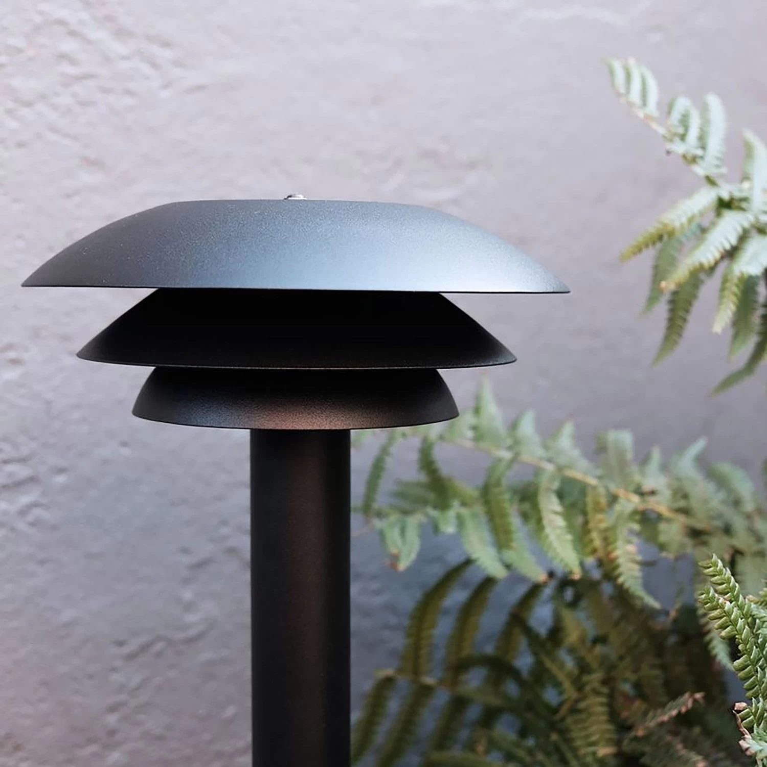 Durable et robuste, le luminaire pour sentier DL est fabriqué en acier inoxydable et présente une finition noire mate. Le design intéressant de l’abat-jour ne rend pas seulement le luminaire de chemin visuellement remarquable, mais crée également un effet d’éclairage intéressant et sans éblouissement, car la lumière de l’ampoule située au milieu de l’abat-jour est dirigée vers le bas par les trois éléments et éclaire en toute sécurité la zone située sous le luminaire. Les chemins, les entrées ou les allées peuvent être éclairés de manière élégante et sûre avec le luminaire pour chemins DL.