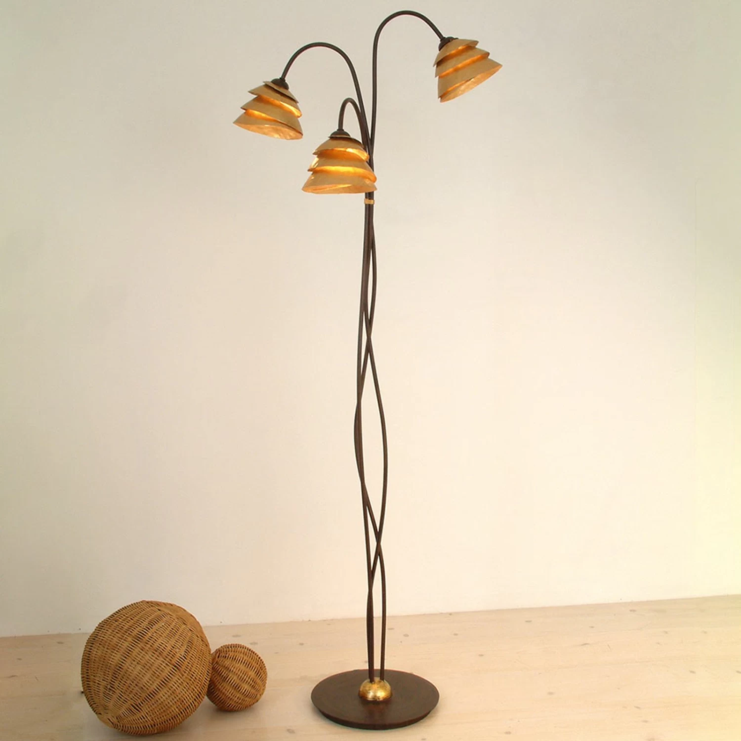 Impressionant Lampadaire SNAIL 3 Amp. Brun Et Doré
