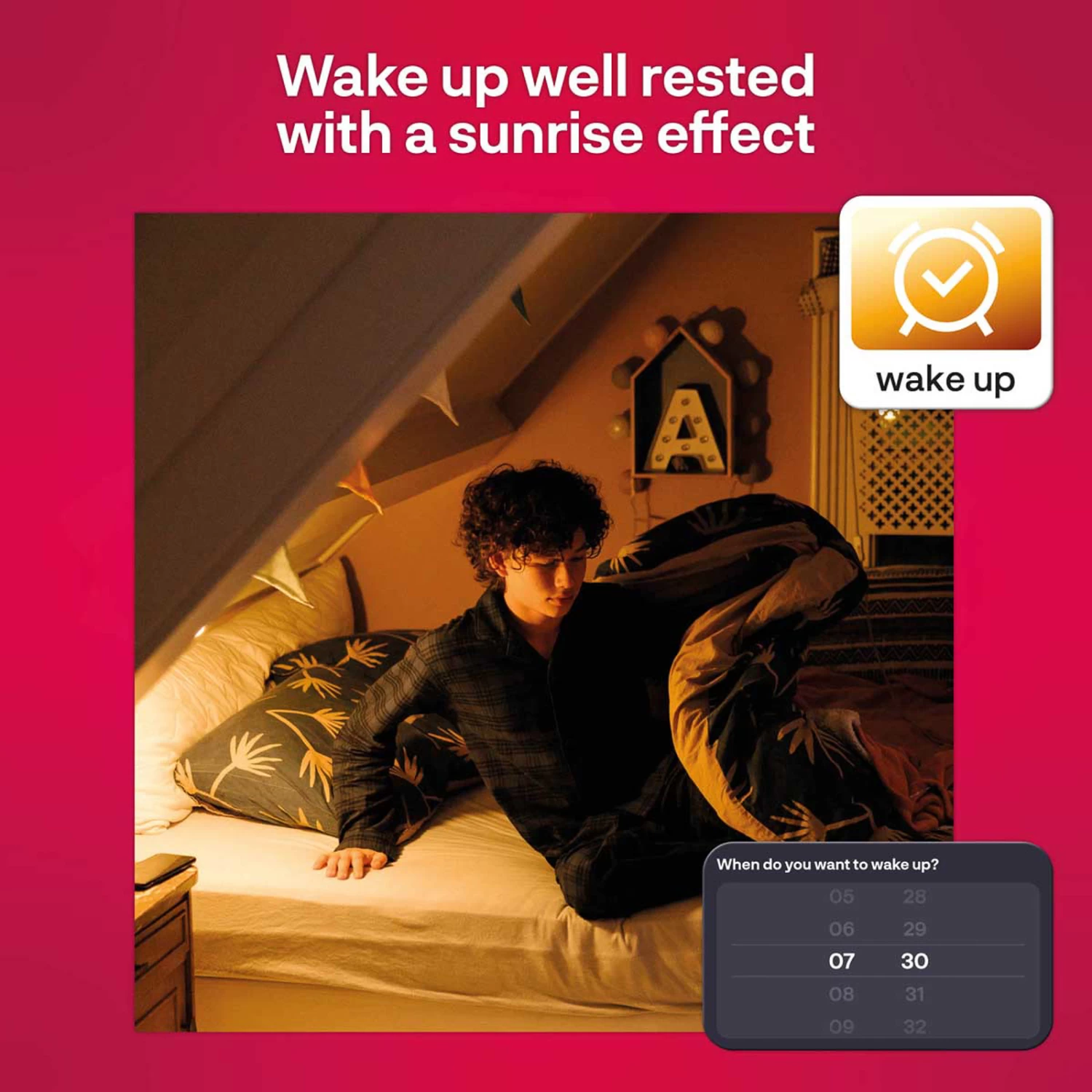 Il est par exemple possible d’intégrer la Smart Bulb Colour dans un système Philips Hue ou Ikea Tradfri existant. Dès qu’elle est connectée à un pont correspondant, elle peut être allumée, éteinte et tamisée via un smartphone ou une tablette, et la couleur de la lumière peut être réglée du blanc chaud au blanc lumière du jour. De plus, 16 millions de nuances de couleurs sont disponibles.