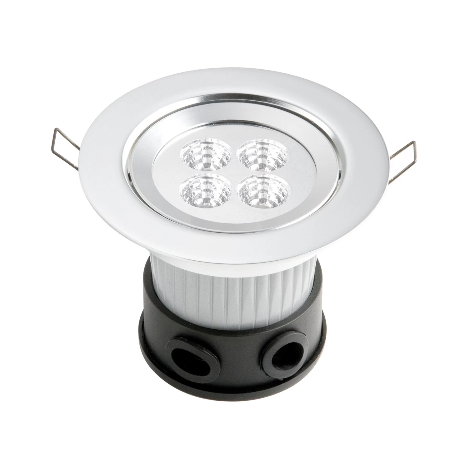 Le LED-SPOT encastré au plafond peut être installé, par exemple, sur la saillie de toit. Le spot est en inox et le boîtier d’encastrement est en matériau synthétique. Avec ce spot-LED la maison entière, le domaine d’entrée extérieur ou la terrasse peuvent être éclairés et ce, avec une faible consommation d’électricité. Le spot est équipé de quatre ampoules PowerLED à 1 W blanc chaud. L’installation a une profondeur de 10 cm. Branchement direct sur une tension de 230 V.