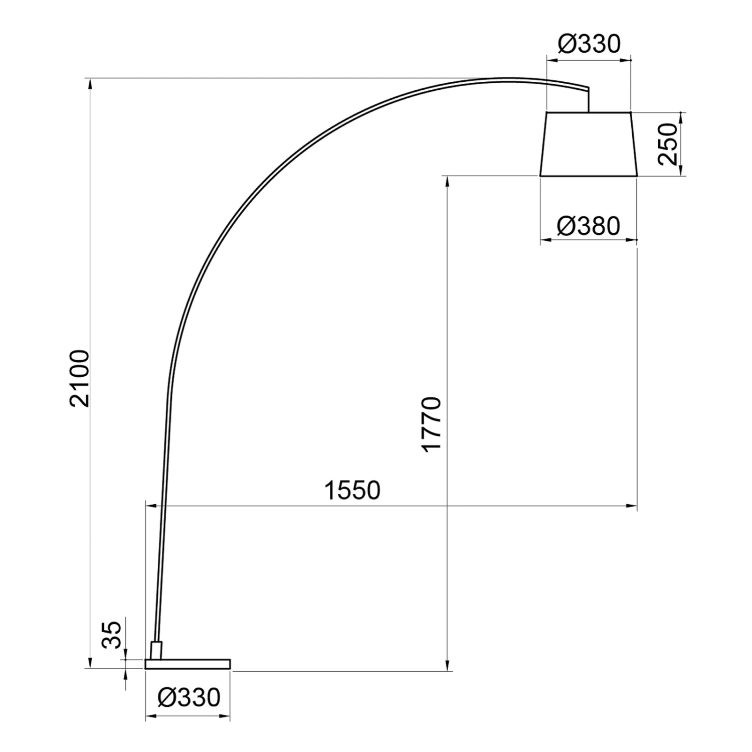 | Autres dimensions | Pied longueur 33 cm, largeur 3,5 cm ; Ø abat-jour 38 cm, hauteur 25 cm |