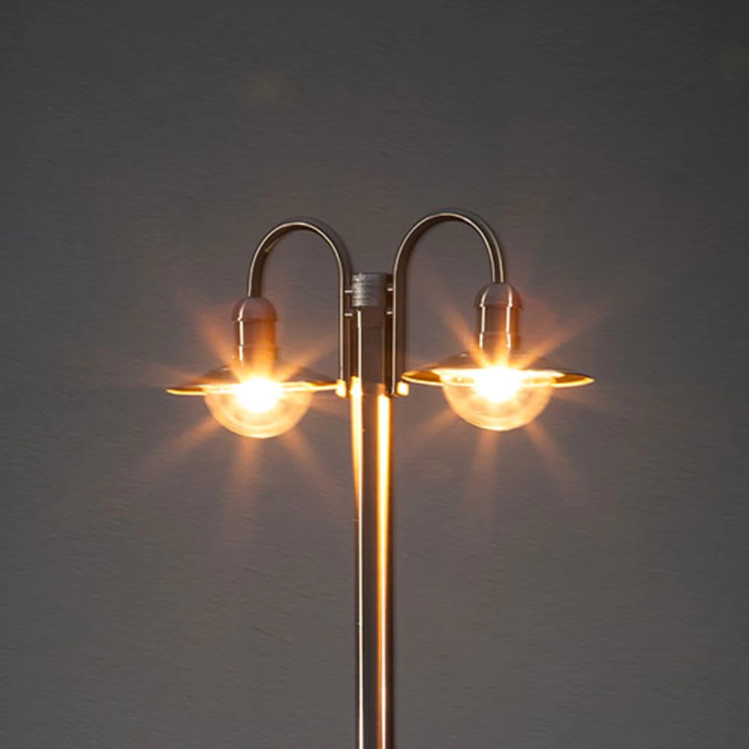 Ce n’est pas seulement à cause de son design symétrique esthétique que le lampadaire à deux lampes Damion fait belle impression. Il offre en plus une lumière agréable pour les routes et allées. Le design de Damion est indémodable, parce qu’il est en inox, un matériau qui restera moderne et intemporel.