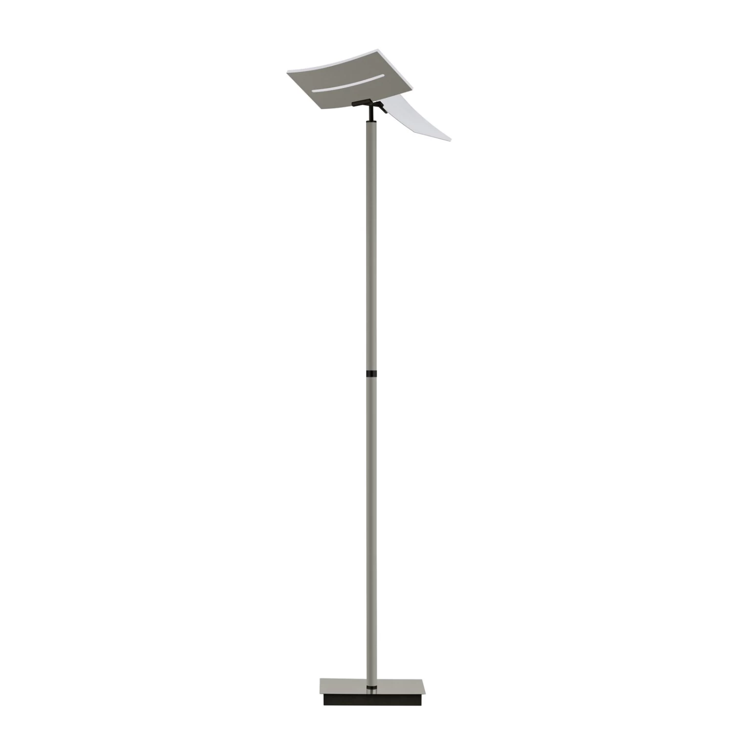 Lampadaire LED Evolo avec fonction CCT et variateur Evolo est un lampadaire LED moderne à tous points de vue, qui diffuse une lumière adaptée à chaque situation et activité. Travaillés dans des formes anguleuses en métal, les deux éléments d’éclairage rectangulaires ont été équipés d’un côté de LED dont la lumière éclaire uniformément à travers le cache blanc opale, tandis que sur le côté fermé, elle ne rayonne qu’à travers une étroite fente. Les deux rectangles sont réglables à volonté, ce qui permet de varier à tout moment la diffusion de la lumière. Le bouton-poussoir situé sur la structure permet de régler la couleur de la lumière dans une plage allant du blanc chaud 2.700 K à la lumière du jour 6.000 K et de faire varier l’intensité lumineuse.