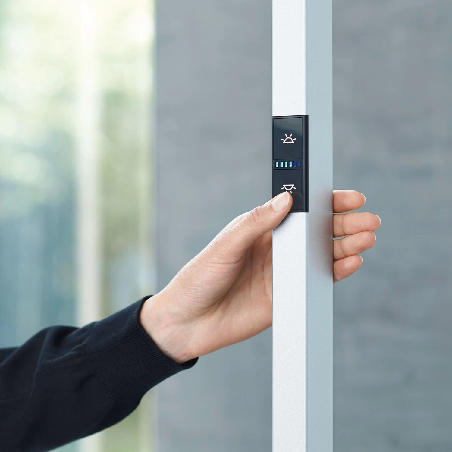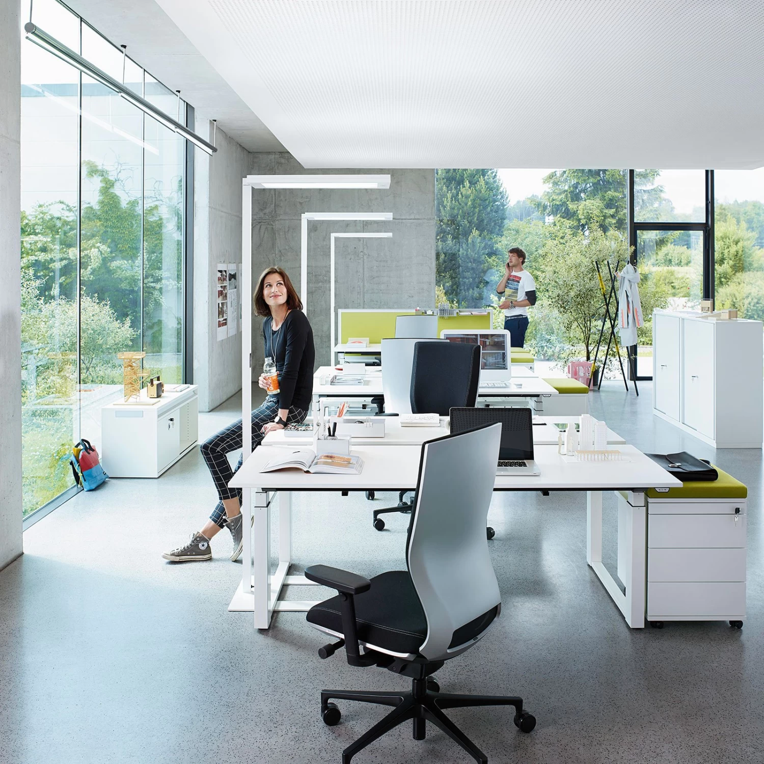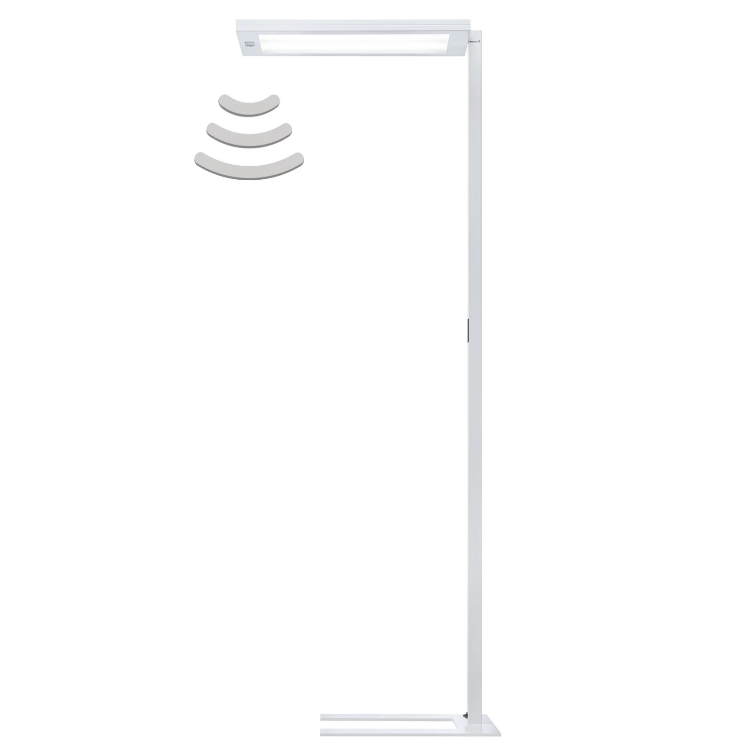 Lampadaire LED Lavigo DPS 14000 – des conditions d’éclairage idéales pour le bureau Les bureaux modernes peuvent être équipés de manière adéquate avec le lampadaire LED Lavigo DPS, qui offre une lumière à rayonnement homogène en blanc universel clair avec une part de lumière directe et indirecte. Le boîtier du Lavigo DPS 14000 est en acier et en plastique et est peint en blanc, ce qui permet de combiner le lampadaire avec de nombreuses variantes d’aménagement. La part de lumière directe est de 12 %. L’anti-éblouissement est assuré par l’écran à prismes coniques intégré. La part de lumière directe et indirecte peut être réglée individuellement. Équipé d’un capteur de mouvement PIR et d’un capteur de lumière du jour. Le niveau d’éclairage est réglable, un capteur de lumière du jour programmable régule la part de lumière artificielle, le système de détection enregistre les mouvements dans un rayon d’environ 1,1 m, l’extinction se fait automatiquement (période programmable de 5 à 30 minutes) après le dernier mouvement détecté. Le bouton-poussoir multifonctionnel se trouve sur la tige de la structure – composante directe de la lumière avec technologie Edgelight et Lightguide pour une diffusion homogène de la lumière – tête du luminaire amovible – sans scintillement – pied indépendant – couleur de contraste décorative : gris silex – avec ballast électronique