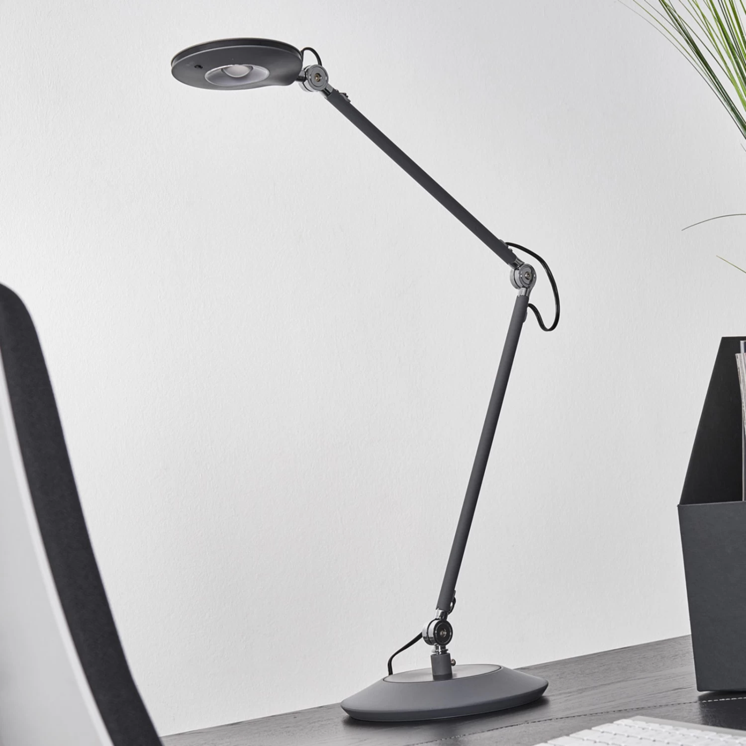 La lampe à poser LED Roderic est l’exemple parfait d’une source de lumière polyvalente et offre des performances exceptionnelles comme éclairage de bureau ou de table de nuit par exemple. Sa polyvalence est principalement liée à ses trois articulations, qui permettent d’orienter l’éclairage de façon très flexible aussi bien à l’horizontale qu’à la verticale. La lampe à poser LED Roderic est éclairée par une LED SMD puissante de 6 Watts, dont l’éclairage doux est très agréable et peut donc être utilisée comme lampe de lecture.
