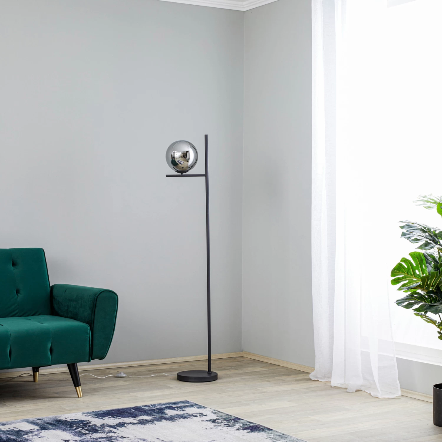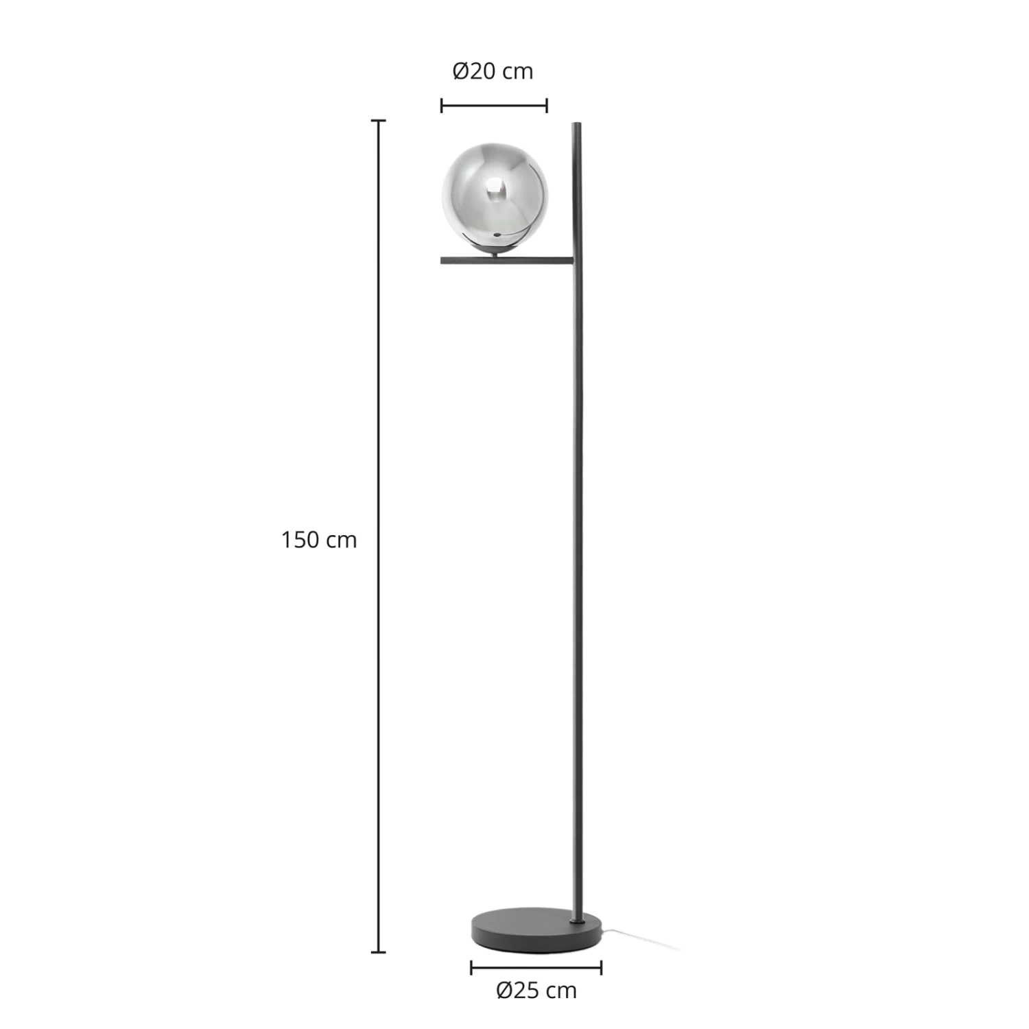 Lindby Denva Lampadaire Verre Fumé, Sphère Grise