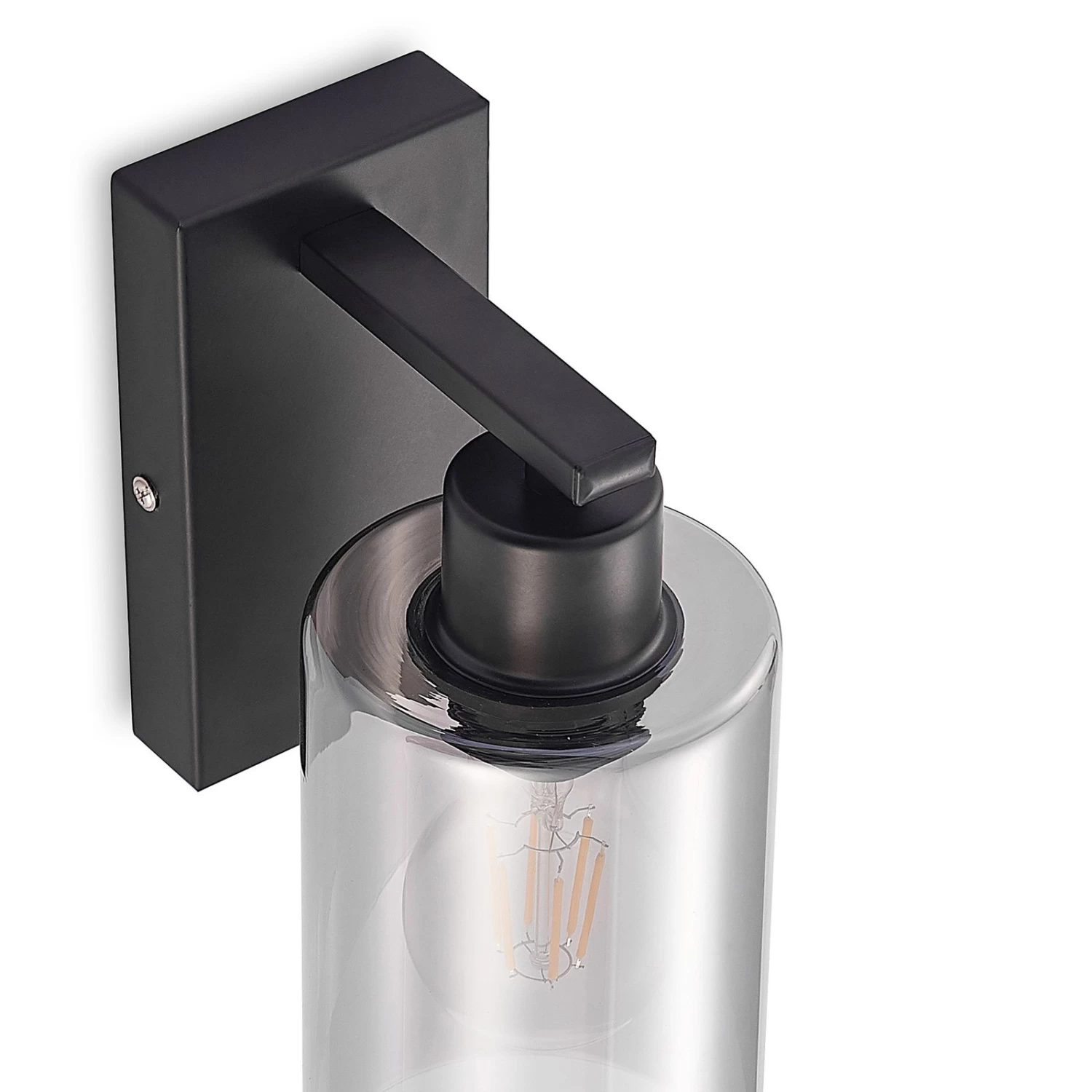 L’applique Emavi est une belle source de lumière qui se combine parfaitement avec les styles d’intérieur modernes. Il est fabriqué en fer et en verre et présente une finition de surface noire. L’abat-jour a une forme cylindrique classique et est fabriqué en verre fumé, ce qui donne des effets lumineux intéressants. Comme la vue du point focal est relativement libre, il est recommandé ici d’utiliser une ampoule décorative pour souligner l’effet de cette lampe.
