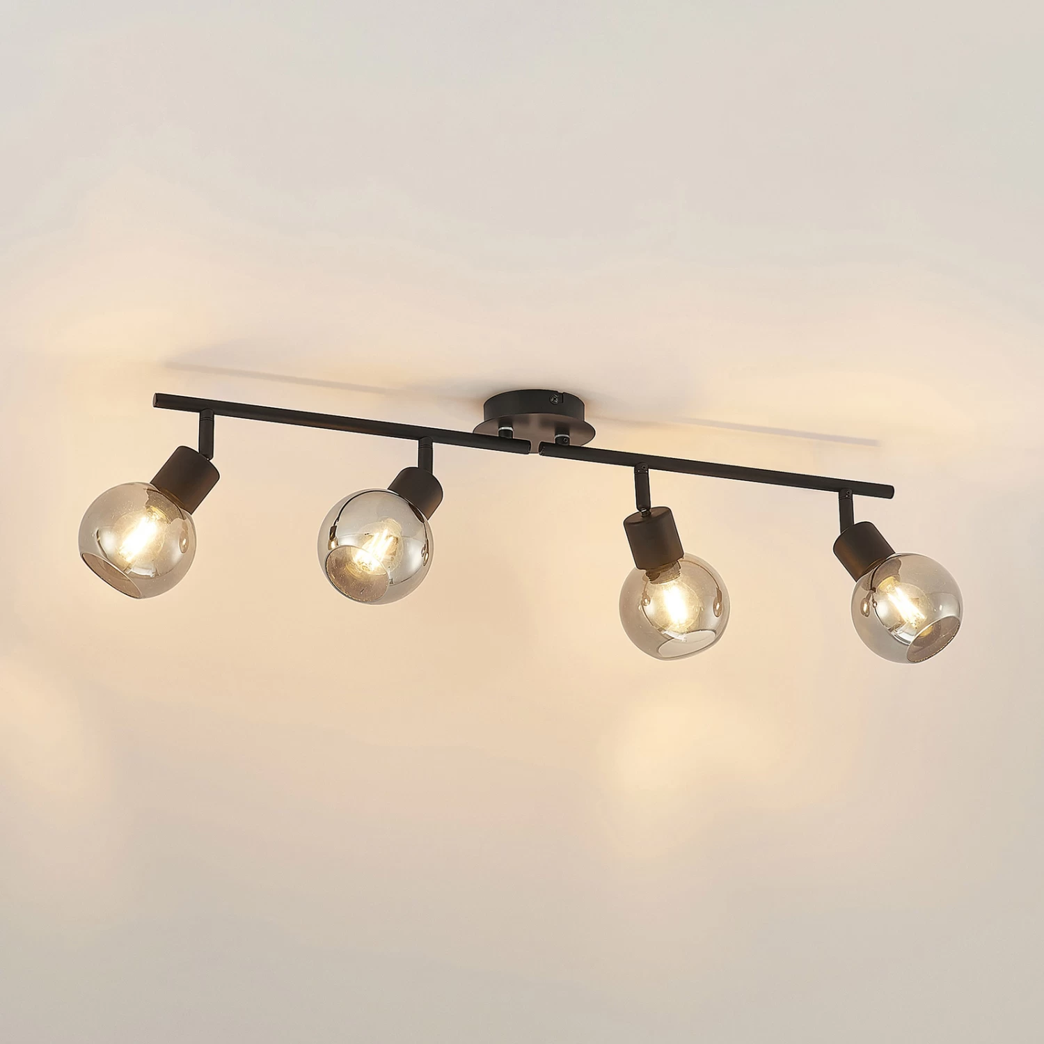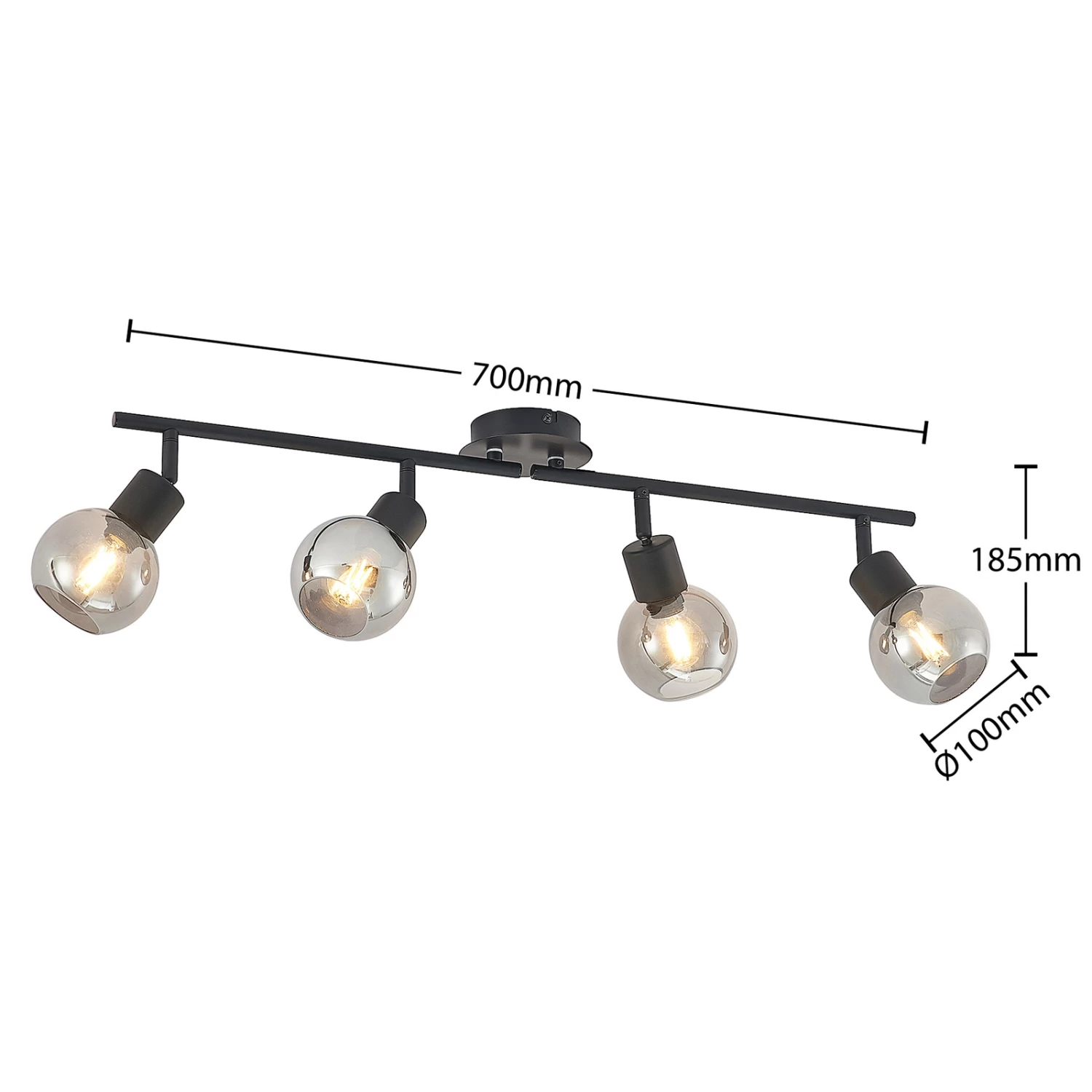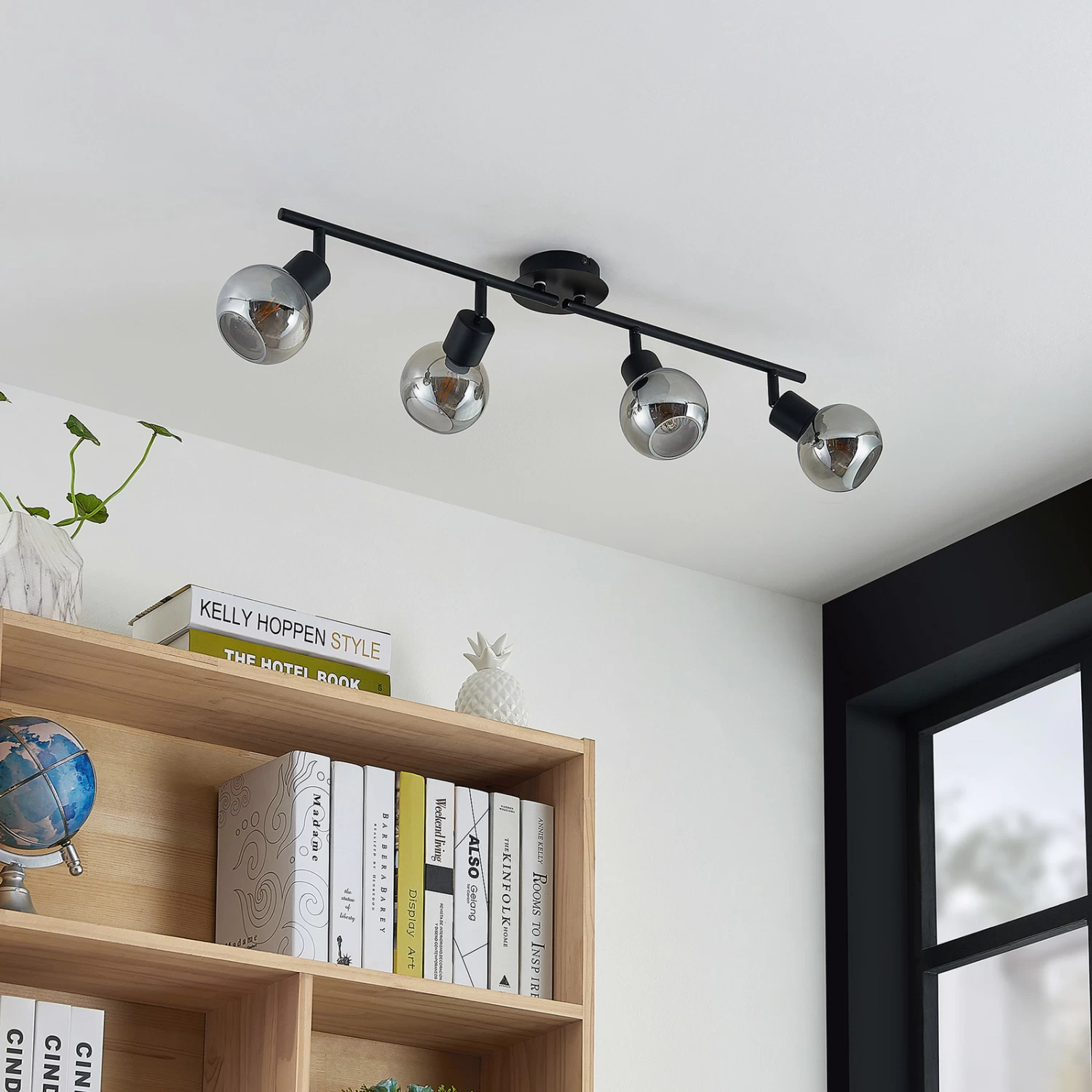 Spot Eridia à quatre flammes en acier et verre fumé au design marquant