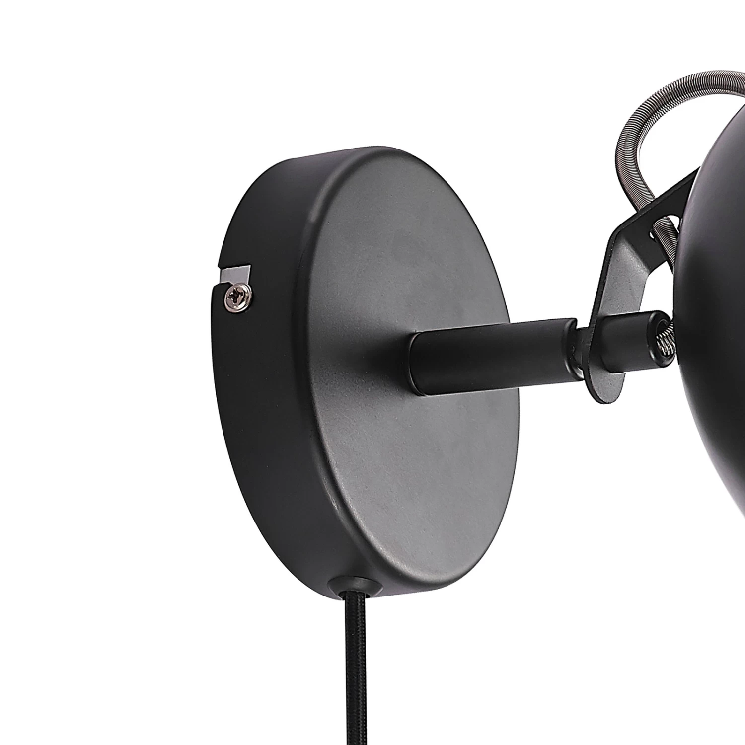 Applique murale Fintja en fer avec abat-jour noir et parois intérieures dorées