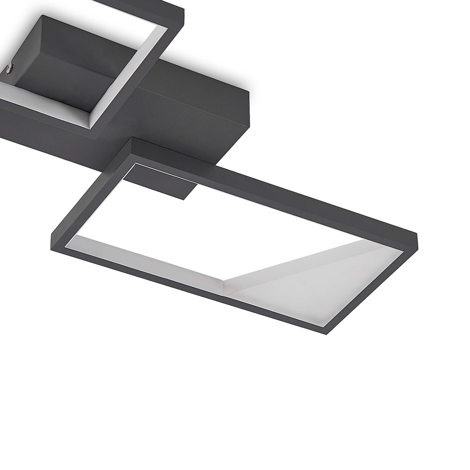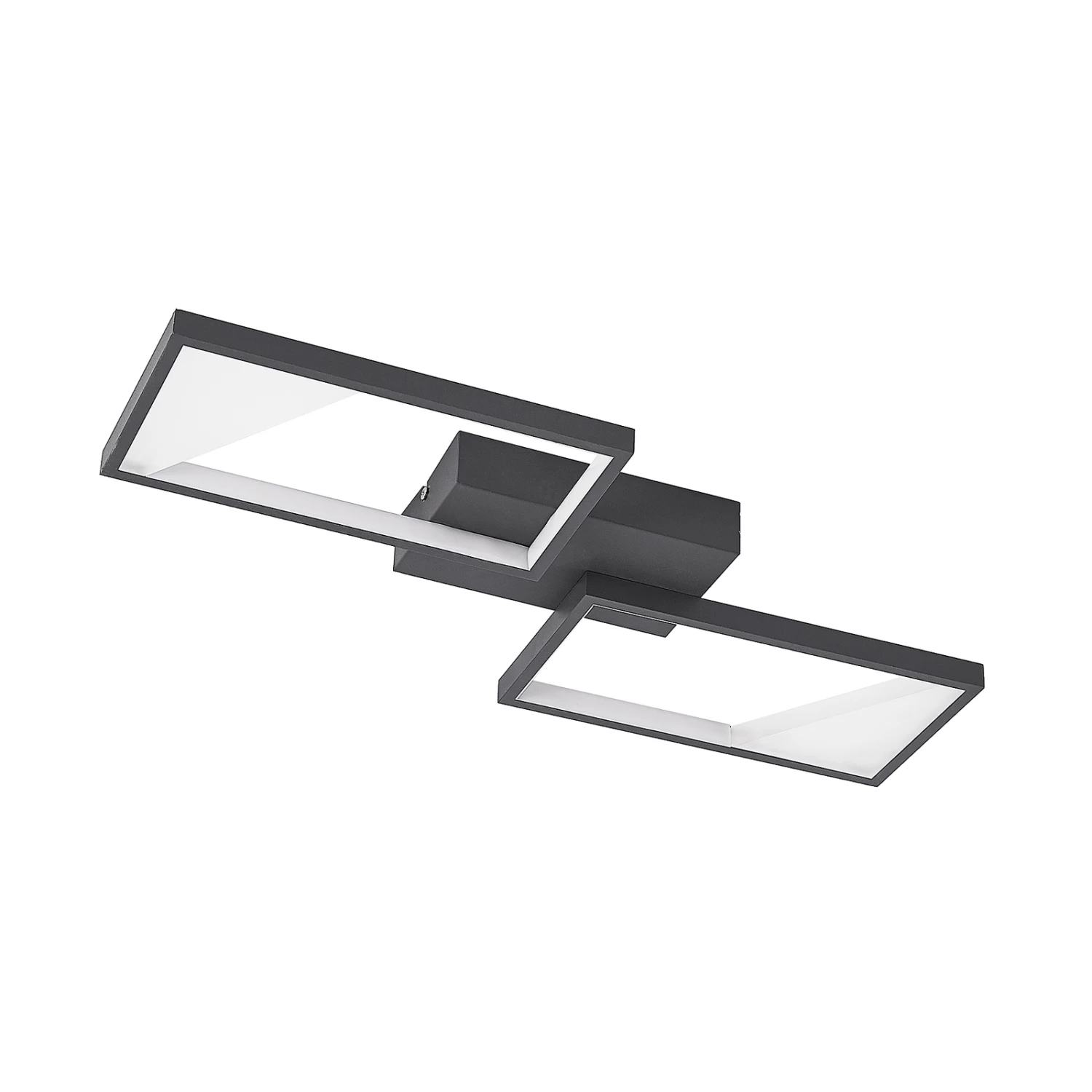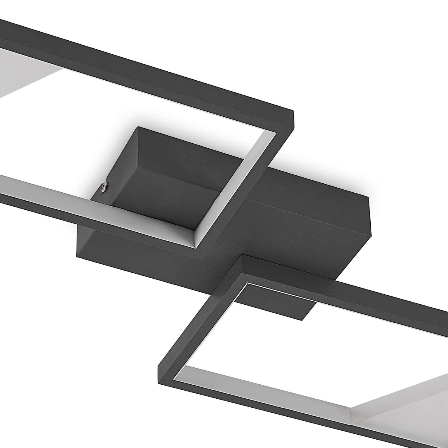 Le plafonnier à LED Fotini impressionne par son aspect symétrique et sa palette de couleurs discrètes. Son corps de lampe est constitué de deux rectangles, qui sont fixés à un support de plafond et qui se touchent dans leurs coins. À l’intérieur des éléments rectangulaires se trouvent des LED fixes qui fournissent, grâce à leur forme ludique, un éclairage blanc chaud. Un interrupteur mural permet d’allumer et d’éteindre la lampe comme d’habitude. Grâce à la technologie de gradation en 3 étapes avec fonction d’arrêt intégrée, il est également possible de le faire varier à trois niveaux de luminosité différents en appuyant plusieurs fois sur l’interrupteur : 100 %, 40 % et 10 %. Mais le plafonnier LED Adritha fait également bonne figure lorsqu’il est éteint. Le design discret et la palette de couleurs grises s’intègrent facilement dans les styles d’ameublement modernes et mettent des accents attrayants au plafond.