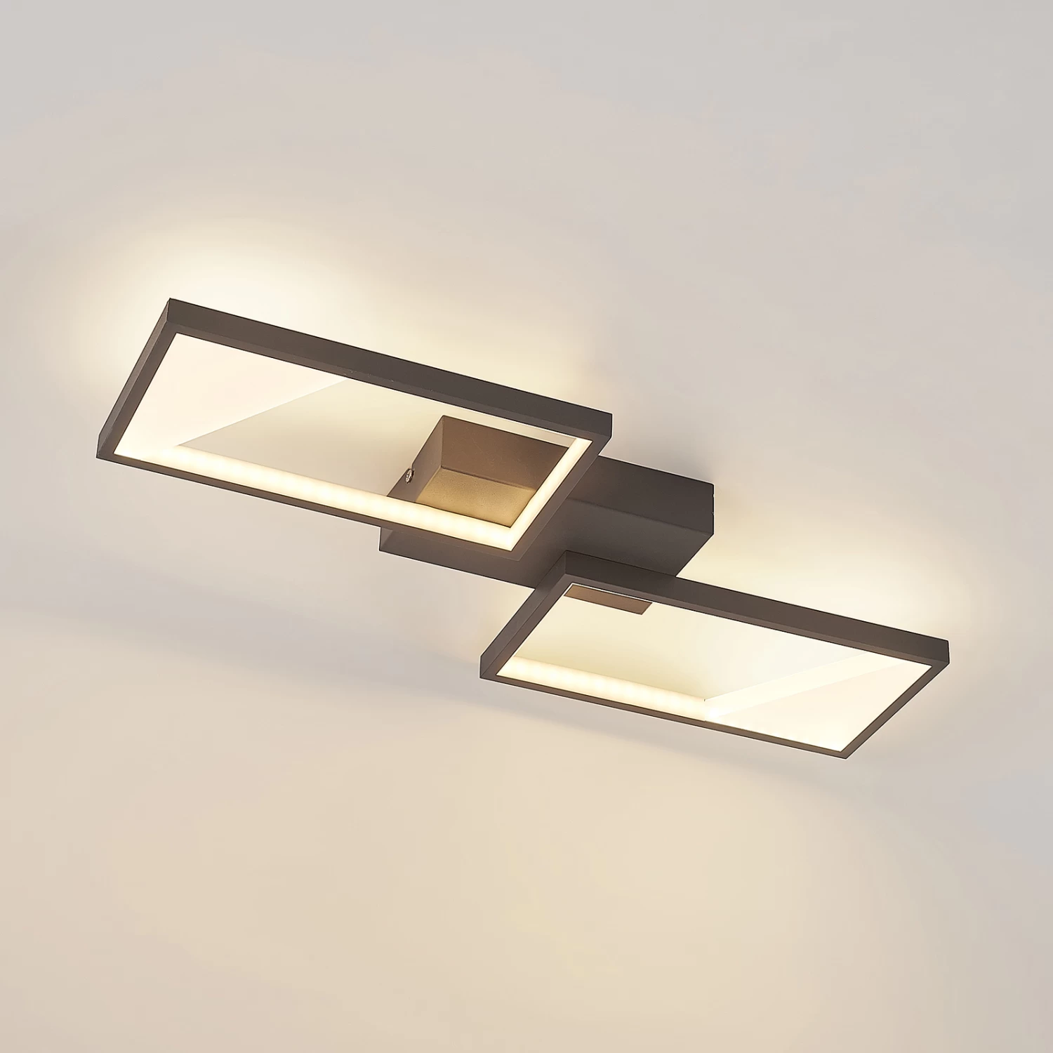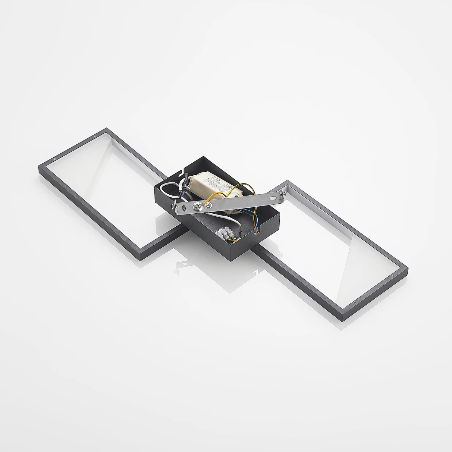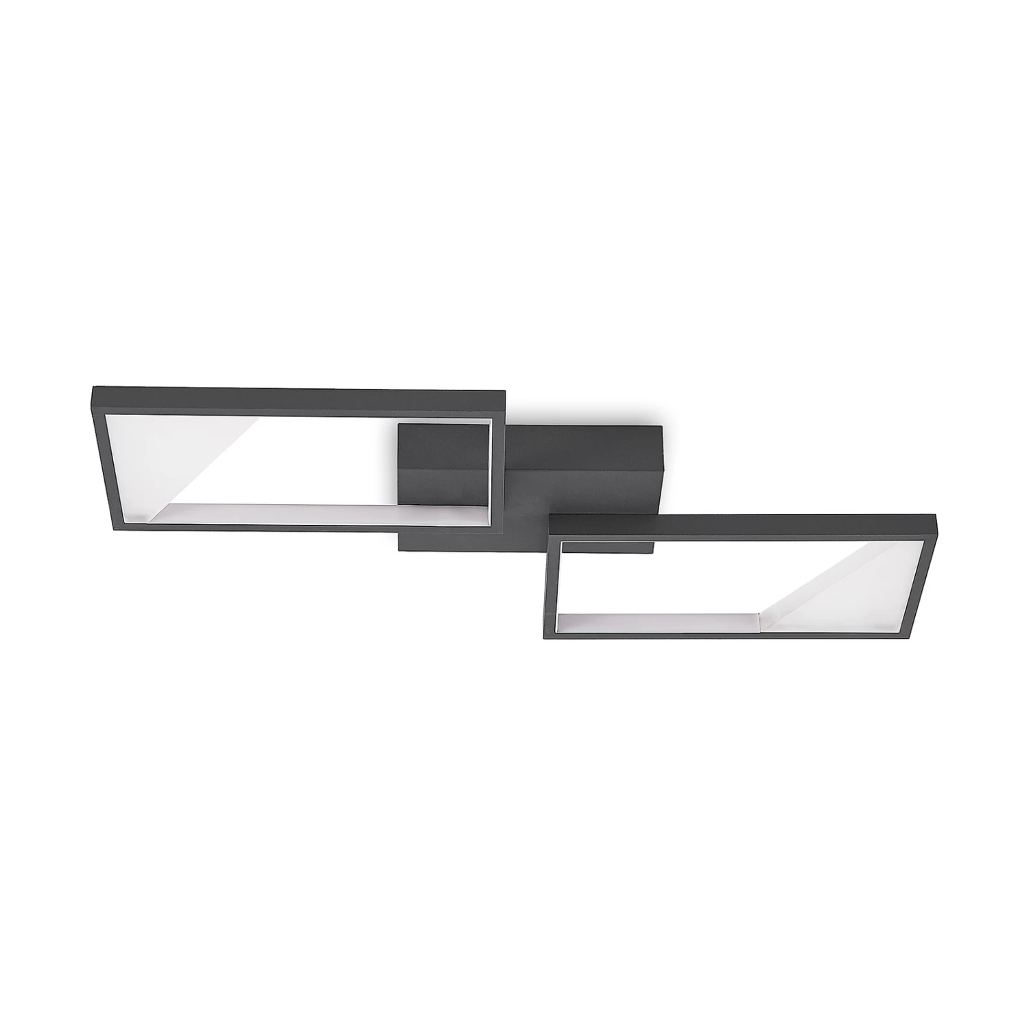 Le plafonnier à LED Fotini impressionne par son aspect symétrique et sa palette de couleurs discrètes. Son corps de lampe est constitué de deux rectangles, qui sont fixés à un support de plafond et qui se touchent dans leurs coins. À l’intérieur des éléments rectangulaires se trouvent des LED fixes qui fournissent, grâce à leur forme ludique, un éclairage blanc chaud. Un interrupteur mural permet d’allumer et d’éteindre la lampe comme d’habitude. Grâce à la technologie de gradation en 3 étapes avec fonction d’arrêt intégrée, il est également possible de le faire varier à trois niveaux de luminosité différents en appuyant plusieurs fois sur l’interrupteur : 100 %, 40 % et 10 %. Mais le plafonnier LED Adritha fait également bonne figure lorsqu’il est éteint. Le design discret et la palette de couleurs grises s’intègrent facilement dans les styles d’ameublement modernes et mettent des accents attrayants au plafond.