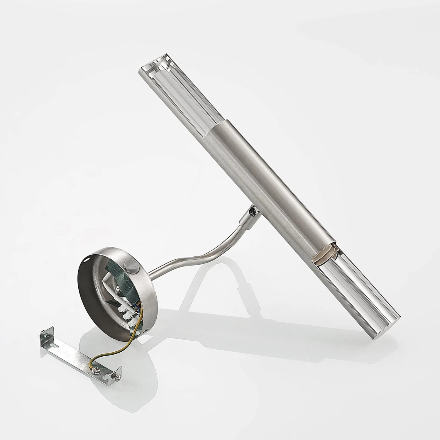 Applique murale Hidari de couleur nickel avec bras de lampe courbé