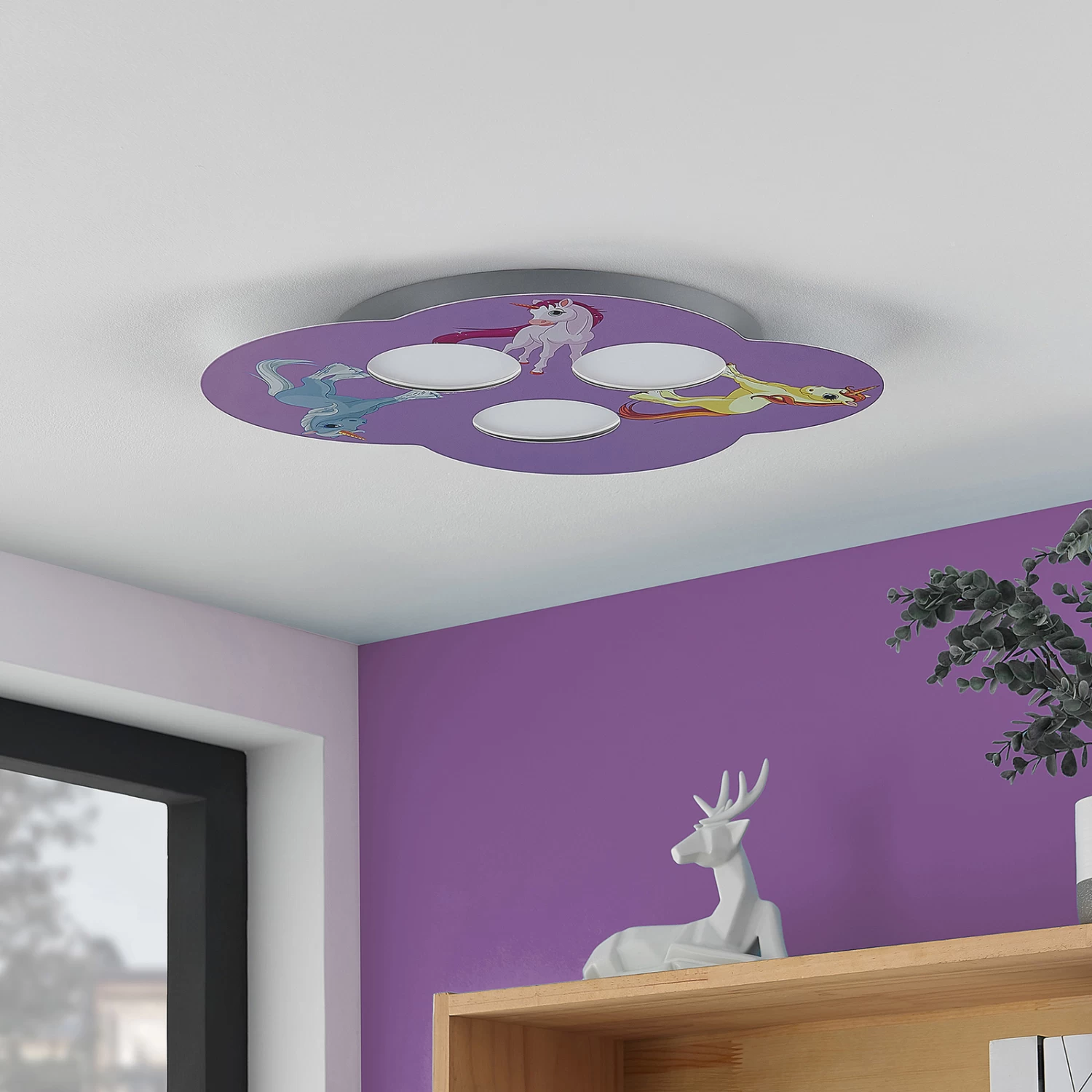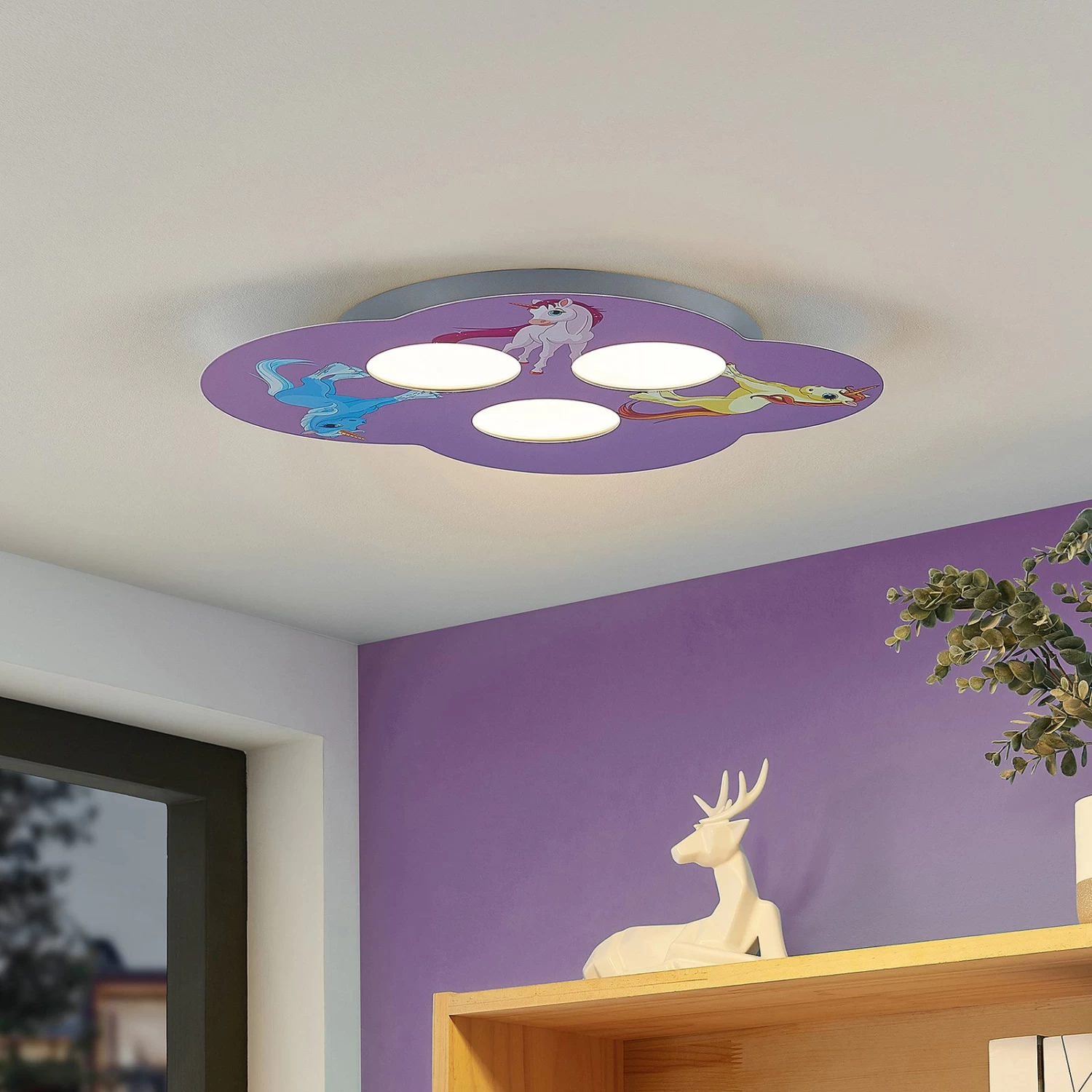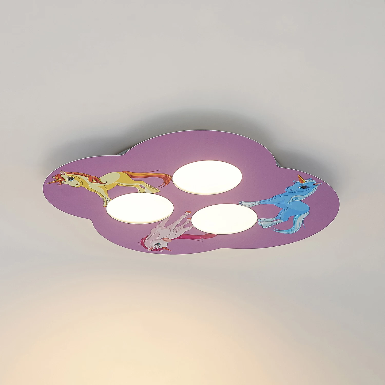 Plafonnier pour chambre d’enfant Thorke en rose avec des illustrations de licornes