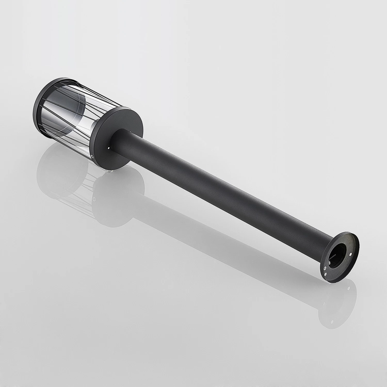 Borne lumineuse Yonan ronde au boîtier en acier inoxydable gris foncé et en polycarbonate transparent