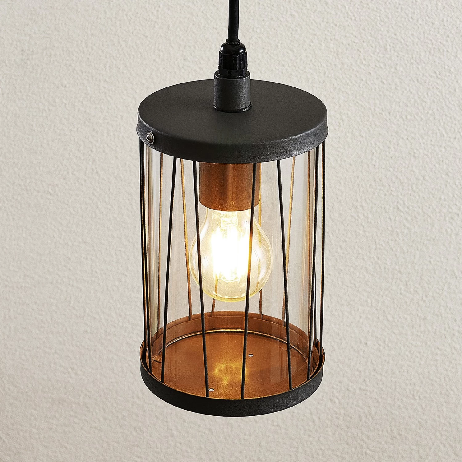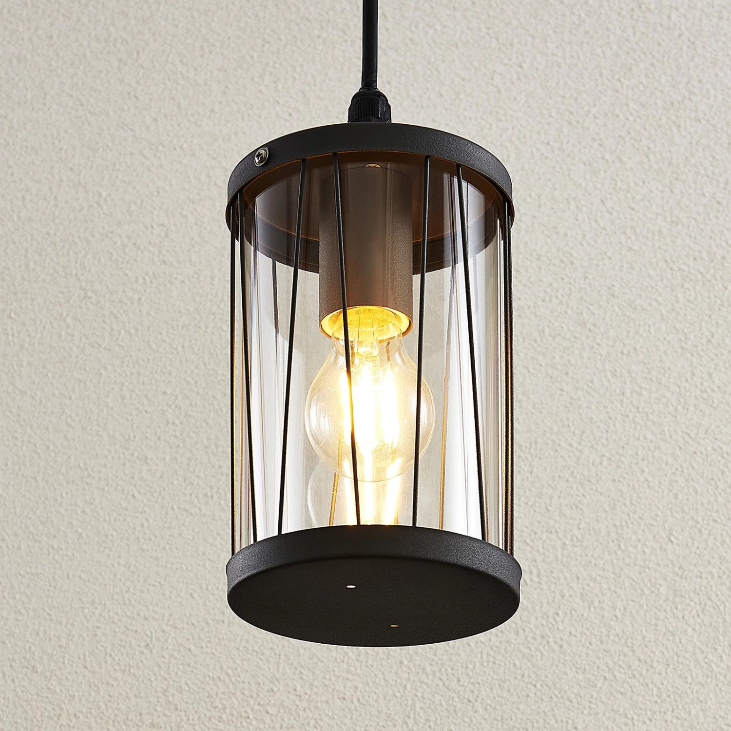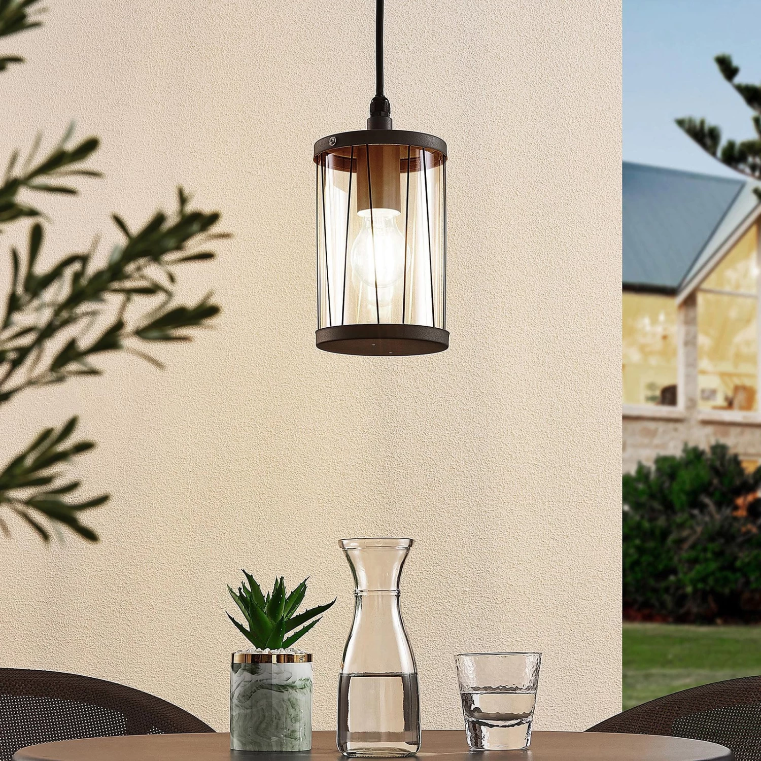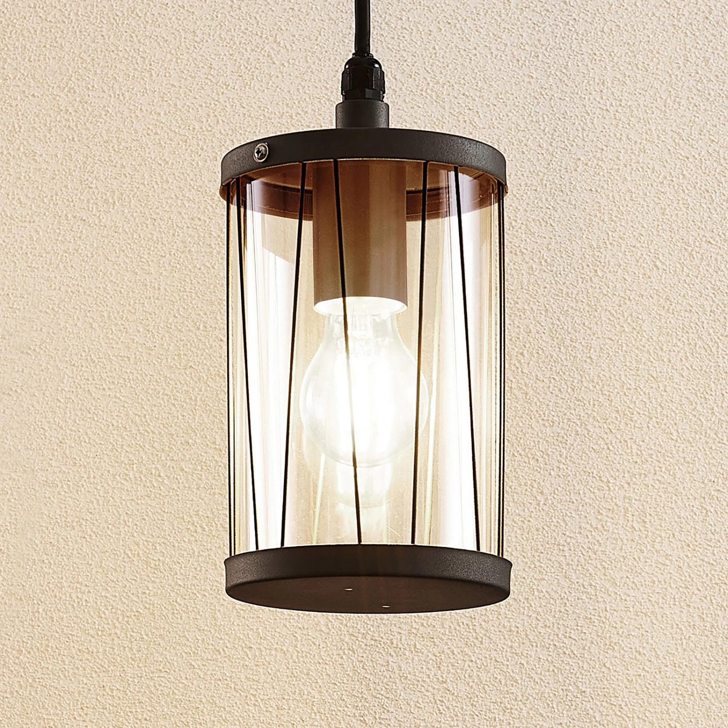 Yonan affiche un design robuste et bien étanche, de sorte que cette suspension peut tout à fait s’installer en extérieur. Par exemple, on peut utiliser cette lampe pour des terrasses et des balcons couverts. Compte tenu de la bonne visibilité de l’ampoule E27, celle-ci doit correspondre le plus possible au design de l’ensemble et affiche un aspect ampoule à incandescence. C’est le cas des ampoules LED à technologie filament ou à l’aspect rustique. Les barres droites et agencées en diagonale sur le côté s’intègrent autour de l’abat-jour et le décorent d’une manière intéressante et élégante. Pour plus d’individualité dans l’éclairage extérieur !