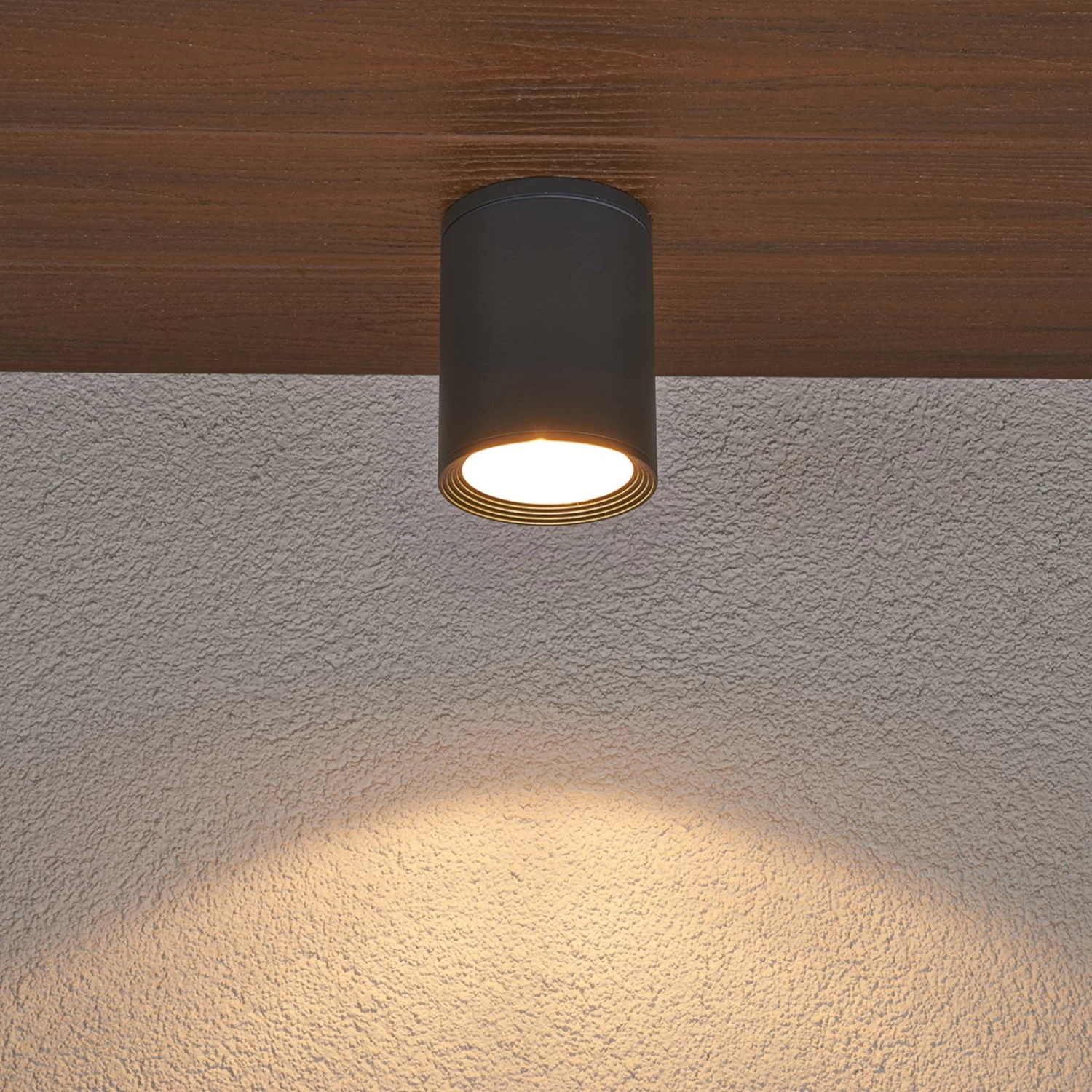 On a souvent tendance à penser que les plafonds n’existent qu’à l’intérieur, mais à tort, car il existe les toitures de terrasses ou les avancées de toit, qui sont des emplacements parfaits pour un plafonnier. Il est important que le luminaire choisi soit doté d’un indice de protection suffisamment élevé, afin que ni la poussière, ni les projections d’eau ne puissent y pénétrer. L’indice IP 54 s’avère idéal dans ce cas précis. La partie inférieure du corps de lampe en aluminium du plafonnier Minna est dotée d’une vitre en verre trempé. Ce luminaire fonctionne avec des ampoules à réflecteur PAR30 de type E27.