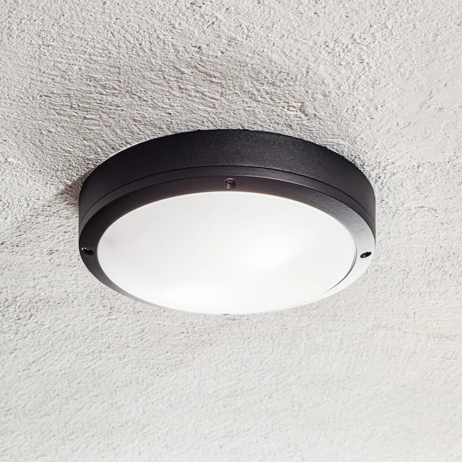 Grâce au diffuseur satiné en polycarbonate, le plafonnier Desi assure un éclairage homogène en extérieur. Équipé d’ampoules LED basse consommation, il est par ailleurs particulièrement économique. Le cadre en métal laqué joue la carte du contraste avec le plafond. Des ampoules adaptées peuvent être commandées directement via la rubrique Accessoires. L’utilisation d’ampoules LED ou basse consommation jusqu’à 12 W est recommandée.