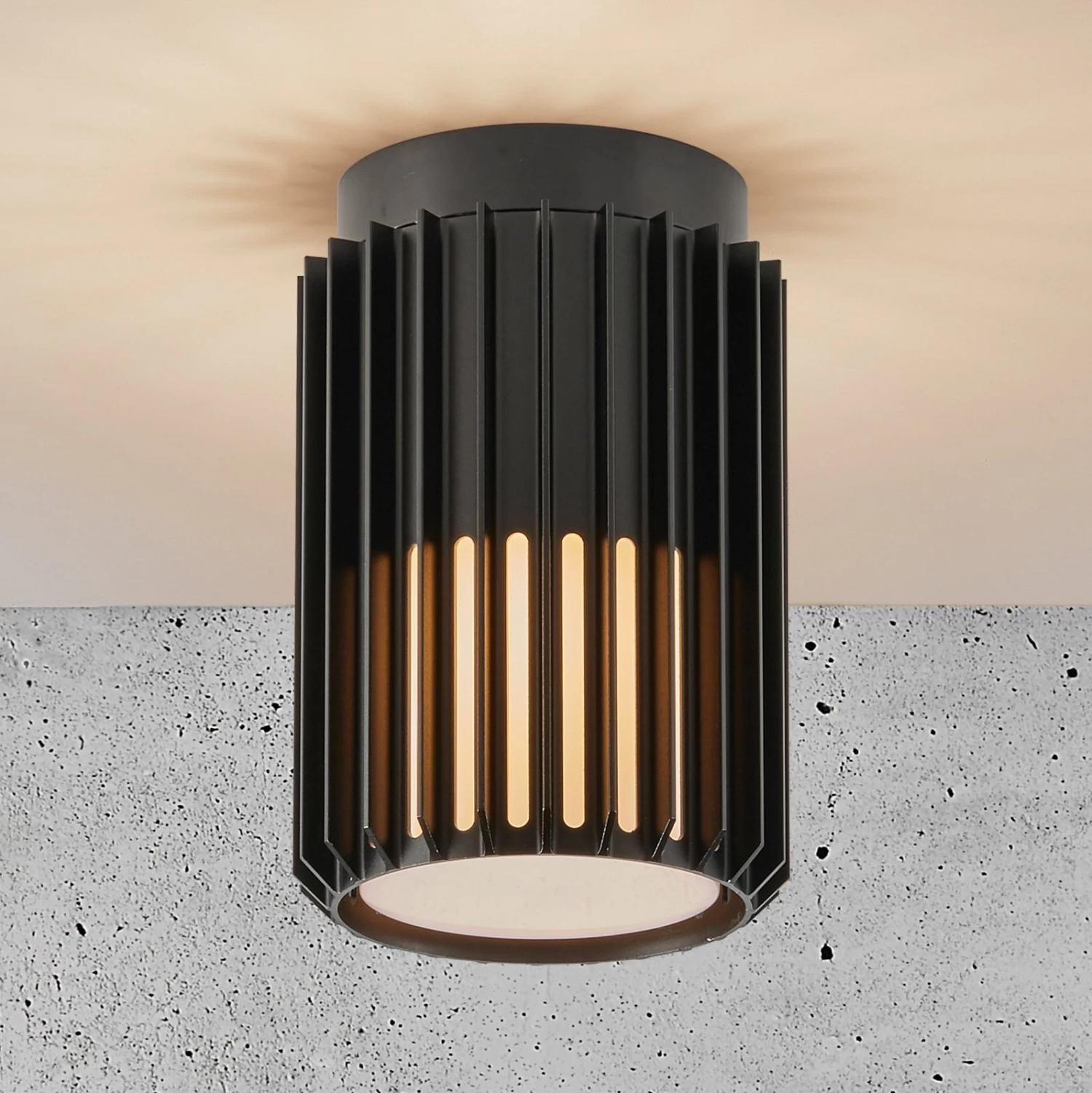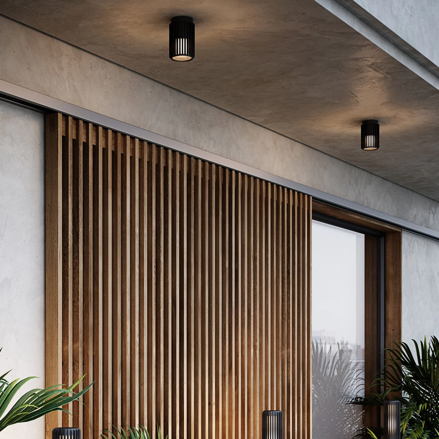 Plafonnier d’extérieur Aludra de Jacob Jensen DesignLe plafonnier Aludra pour l’extérieur est en aluminium anodisé durci et la douille de l’ampoule est protégée du vent et des intempéries par un diffuseur en plastique. La série est de forme ronde et, grâce à de fines lamelles, la lumière brille dans toutes les directions dans la partie inférieure et offre un éclairage d’orientation pratique et innovant. La conception de la lampe est due au célèbre Jacob Jensen Design et est fabriquée par Nordlux au Danemark.