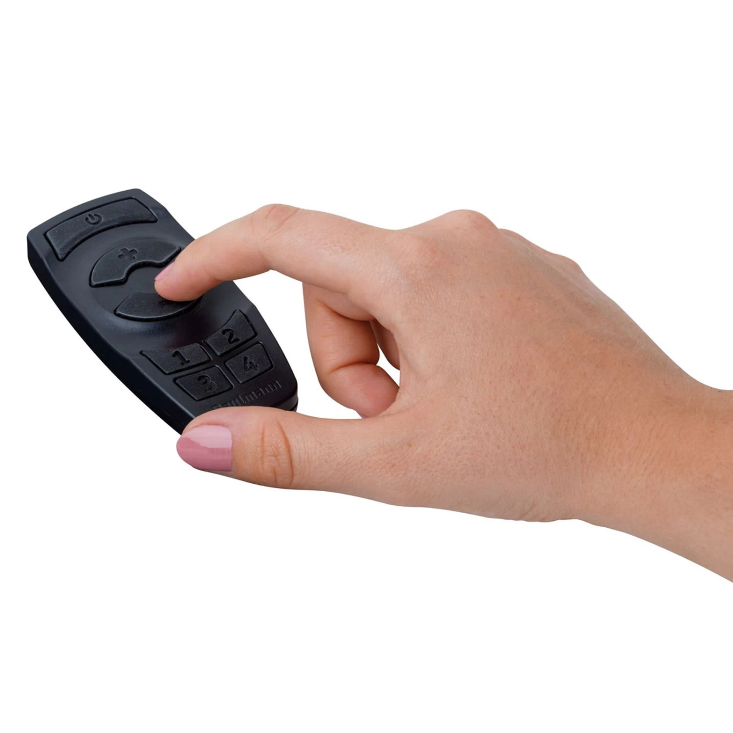 Ce contrôleur avec télécommande est une alternative pratique et fonctionnelle au contrôle du Plug & Shine via l’interrupteur de la lumière. Grâce à la télécommande, les lumières extérieures fournies par le contrôleur peuvent non seulement être allumées mais aussi tamisées – sans avoir à quitter la maison.