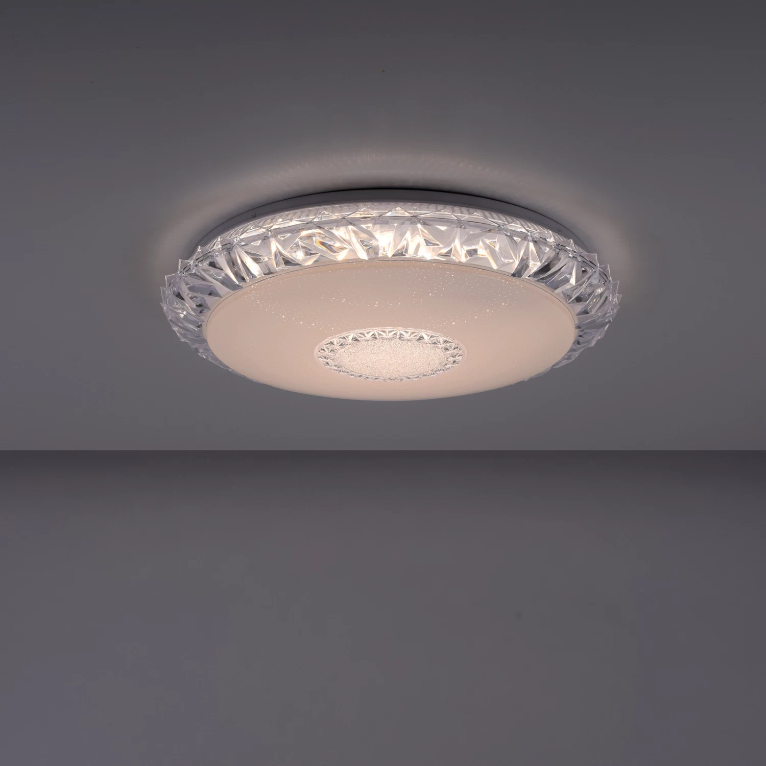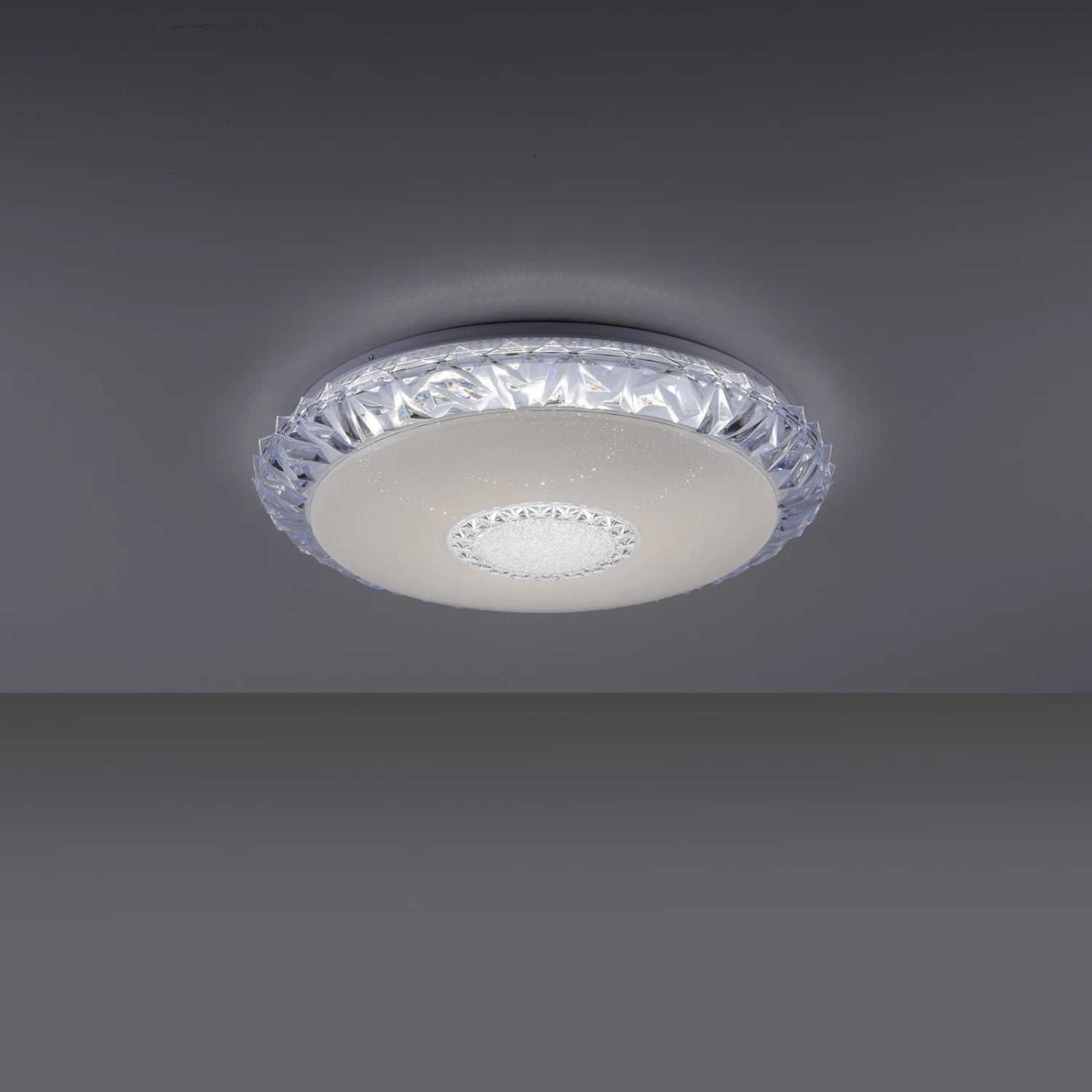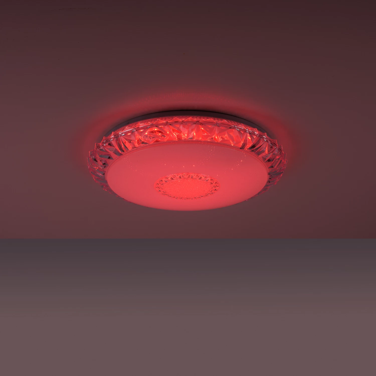 Plafonnier LED Lucca à l’aspect cristal, avec commande de la lumière blanche et RGB via la télécommande