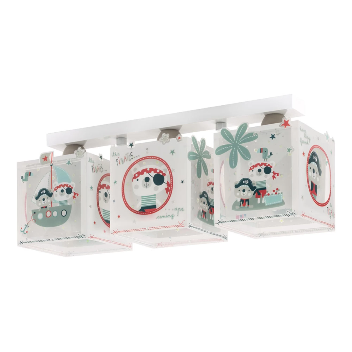 Plafonnier Pirates à trois lampes pour chambre d’enfant, avec des abat-jour carrés