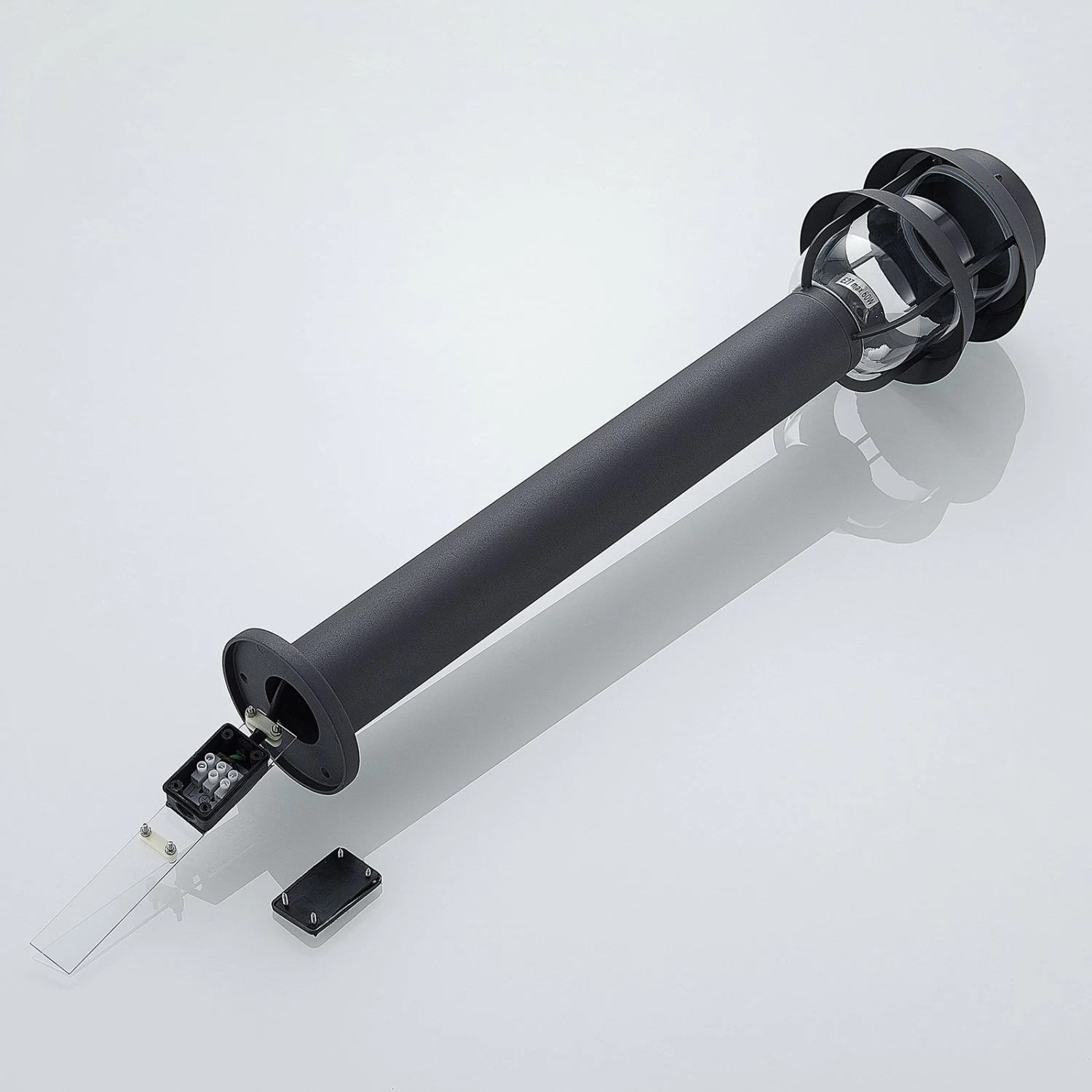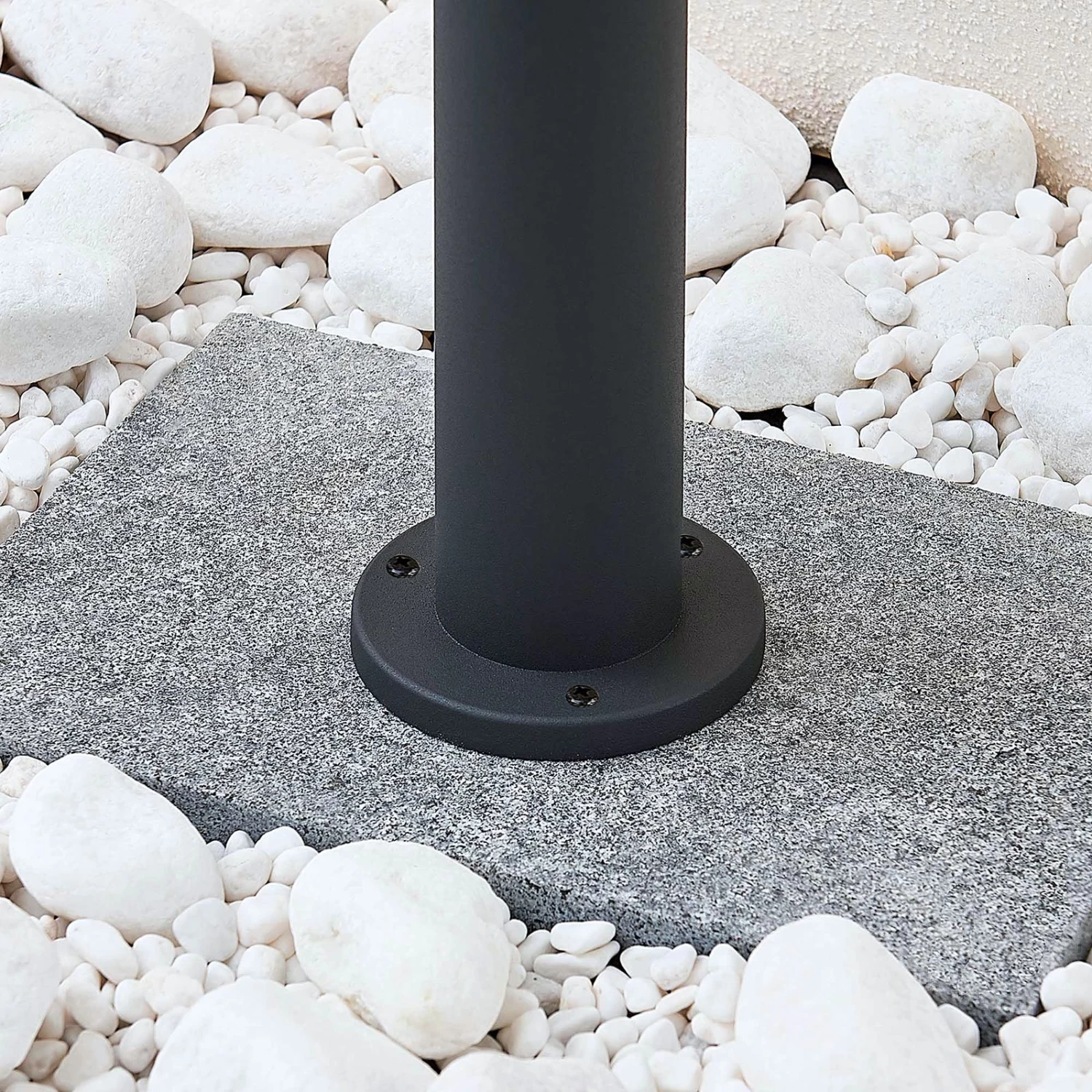 Le potelet Alvaro illumine au mieux les chemins et les allées du jardin afin que l’on puisse s’y orienter même après la tombée de la nuit. La tête de lampe se compose de deux éléments en forme d’anneau et ce design rappelle le style scandinave, toujours élégant même avec les luminaires d’extérieur. Grâce à l’insert en verre transparent qui protège l’ampoule, cette dernière est relativement visible ; il faut donc choisir un modèle à l’aspect approprié. On conseille des ampoules LED avec technologie filament, qui ressemblent aux ampoules à incandescence classiques.