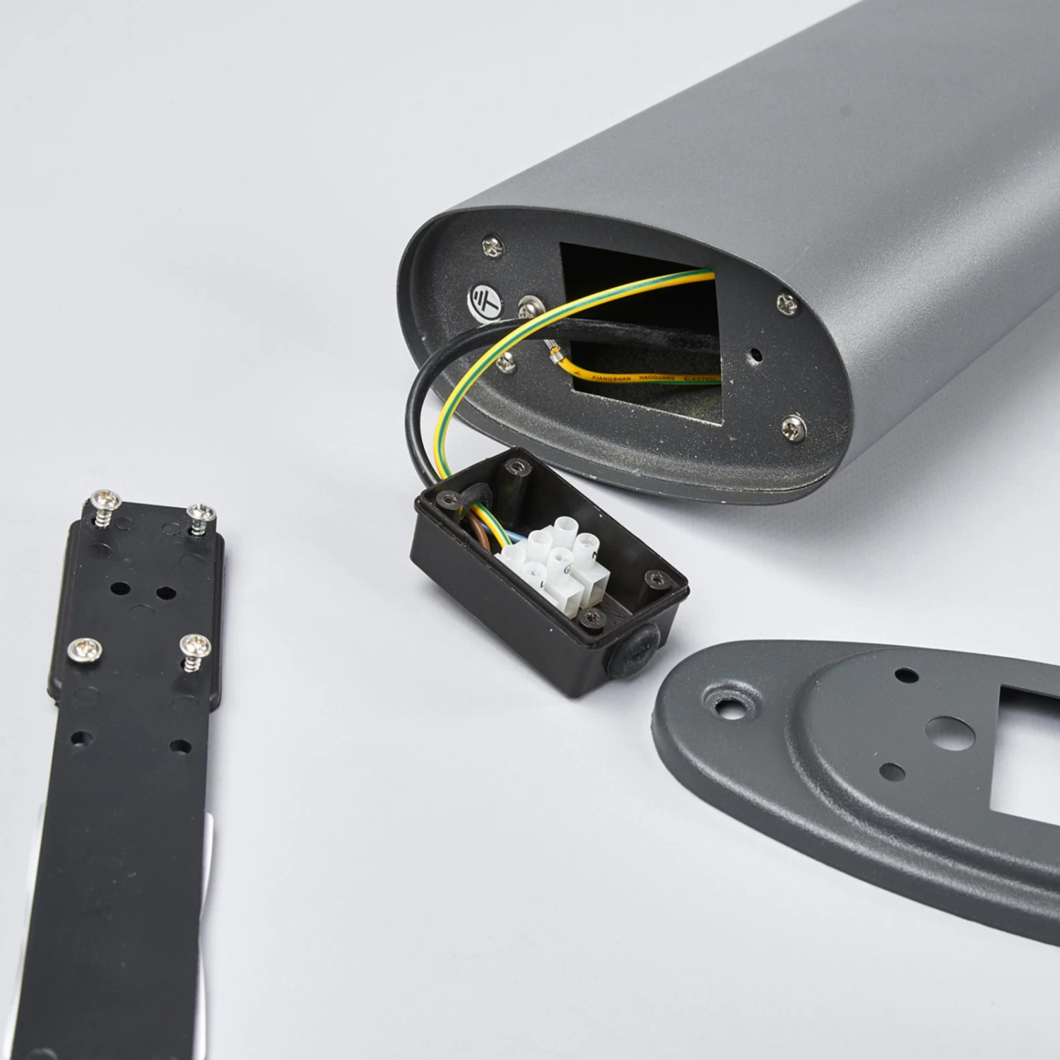 Marius a une forme plutôt ovale, ce qui lui donne un aspect harmonieux et agréable lorsqu’elle est installée dans le jardin ou sur une élévation comme un mur. Grâce à la surface en polycarbonate blanc, la lumière est très agréable et surtout uniforme, de sorte que la lampe à culot LED se distingue par son absence d’éblouissement. Le corps en aluminium a une finition gris foncé et s’adapte à de nombreux environnements modernes.