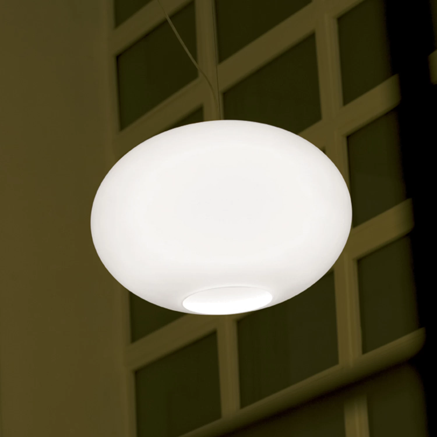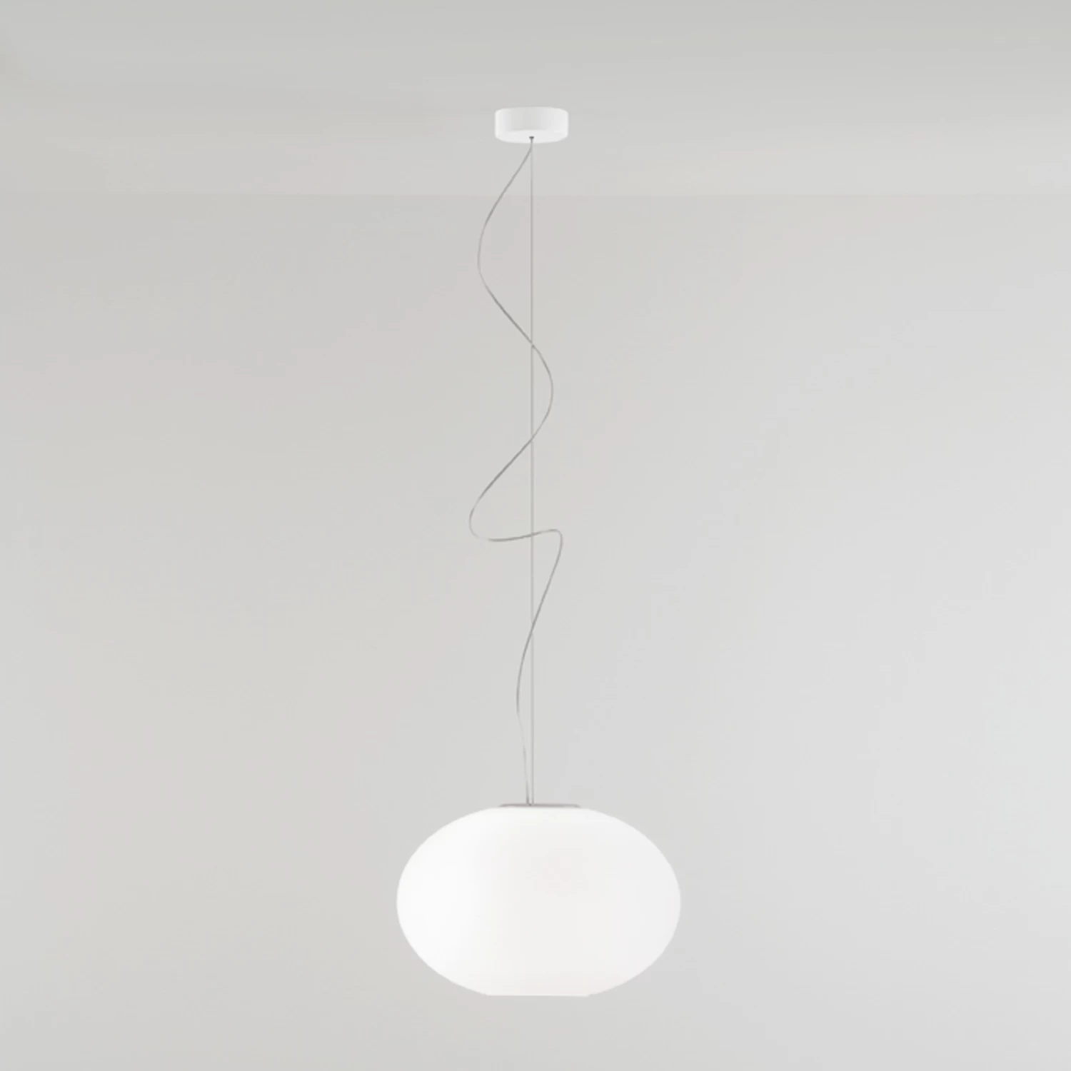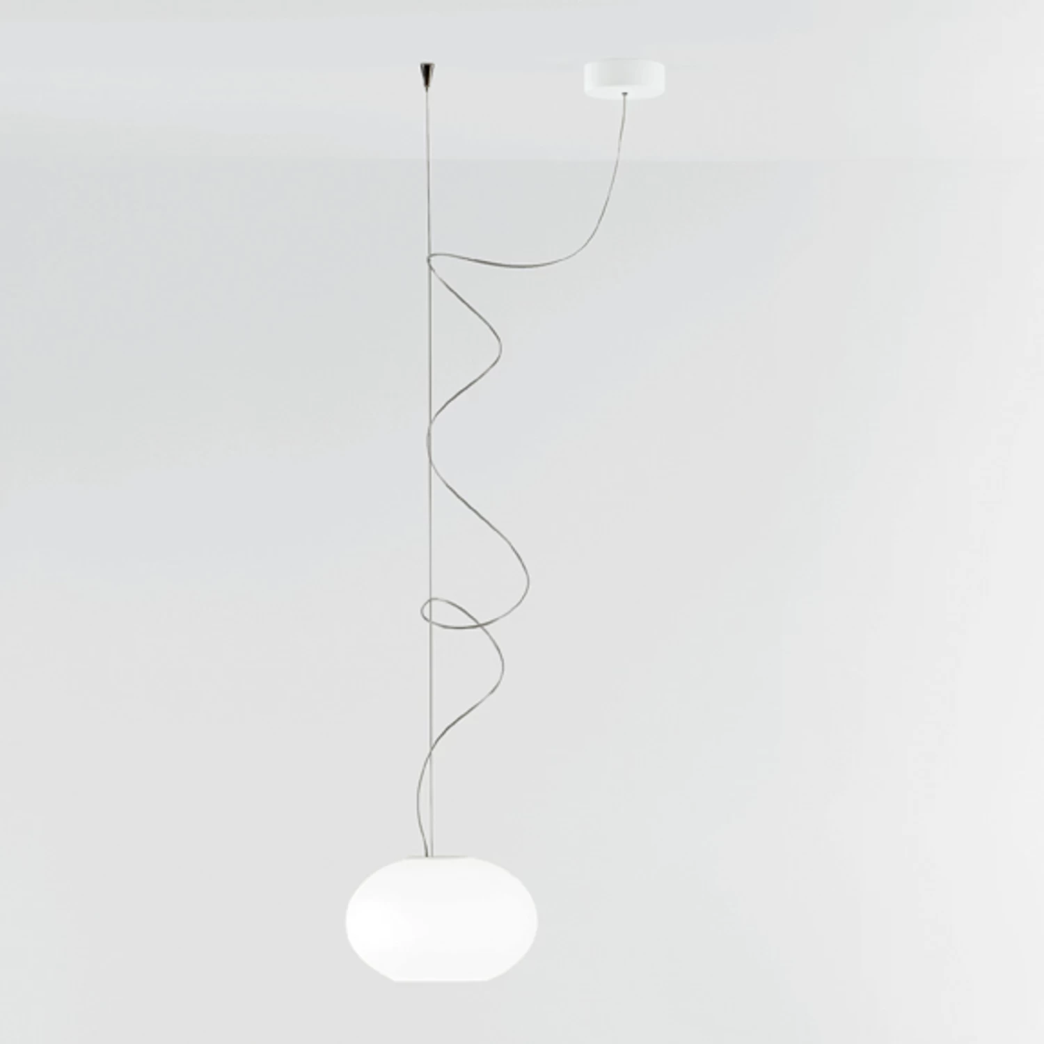 Le luminaire suspendu Zero séduit par son look épuré et son agréable éclairage circulaire. Zero s’intègre parfaitement dans les intérieurs modernes, que ce soit dans les salles de séjour privées ou dans les espaces publics de réception et de détente. Le verre soufflé opale de l’abat-jour elliptique bombé assure une réfraction uniforme de la lumière. Pour équiper la douille E27, il est possible d’acheter une lampe appropriée parmi les accessoires.