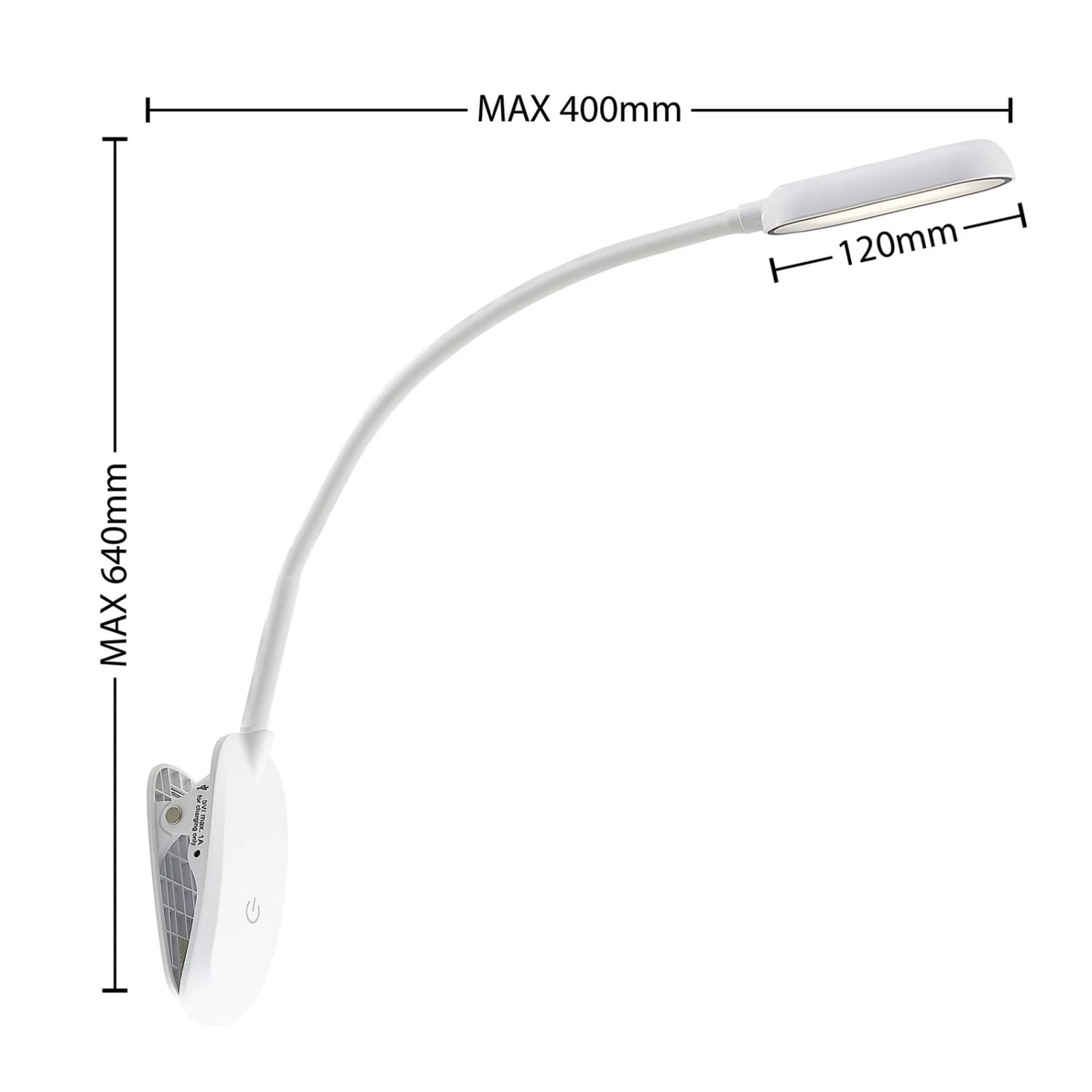 Lampe à pince LED blanche Najari avec variateur d’intensité en continu, port USB