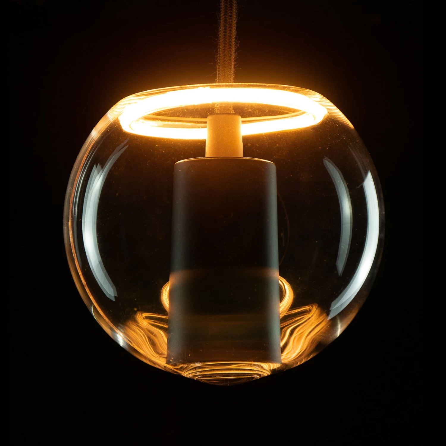 Lampe LED floating à intensité variable avec culot intérieur, E27, 4,5WLa lampe LED floating séduit par son design exceptionnel. Le culot E27 se trouve à l’intérieur du boîtier en verre transparent et est entouré par celui-ci. L’ampoule forme ainsi un petit écran de verre. La lampe globe convient donc particulièrement bien aux suspensions sans abat-jour. La lumière chaude crée une atmosphère agréable et peut être atténuée à l’aide d’un variateur de phase externe.- couleur de lumière chaude de 2.200 K- dimmable avec ELTAKO, Jung, GIRA- très bon rendu des couleurs Ra 90- récompensé par le Plus X Award 2022/2023 dans les catégories Innovation, Haute qualité et Design.