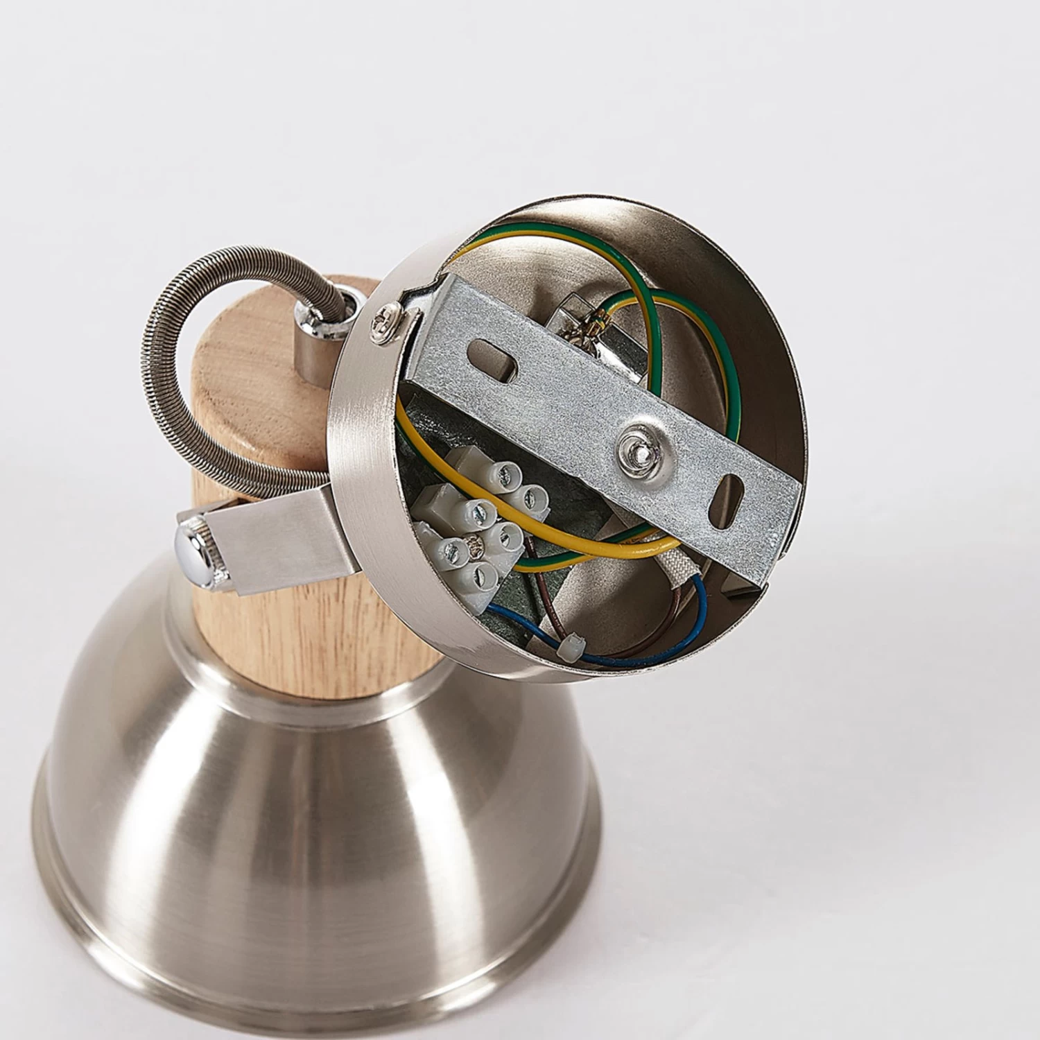 Spot de plafond Dennis en métal et bois – convient également pour un montage mural