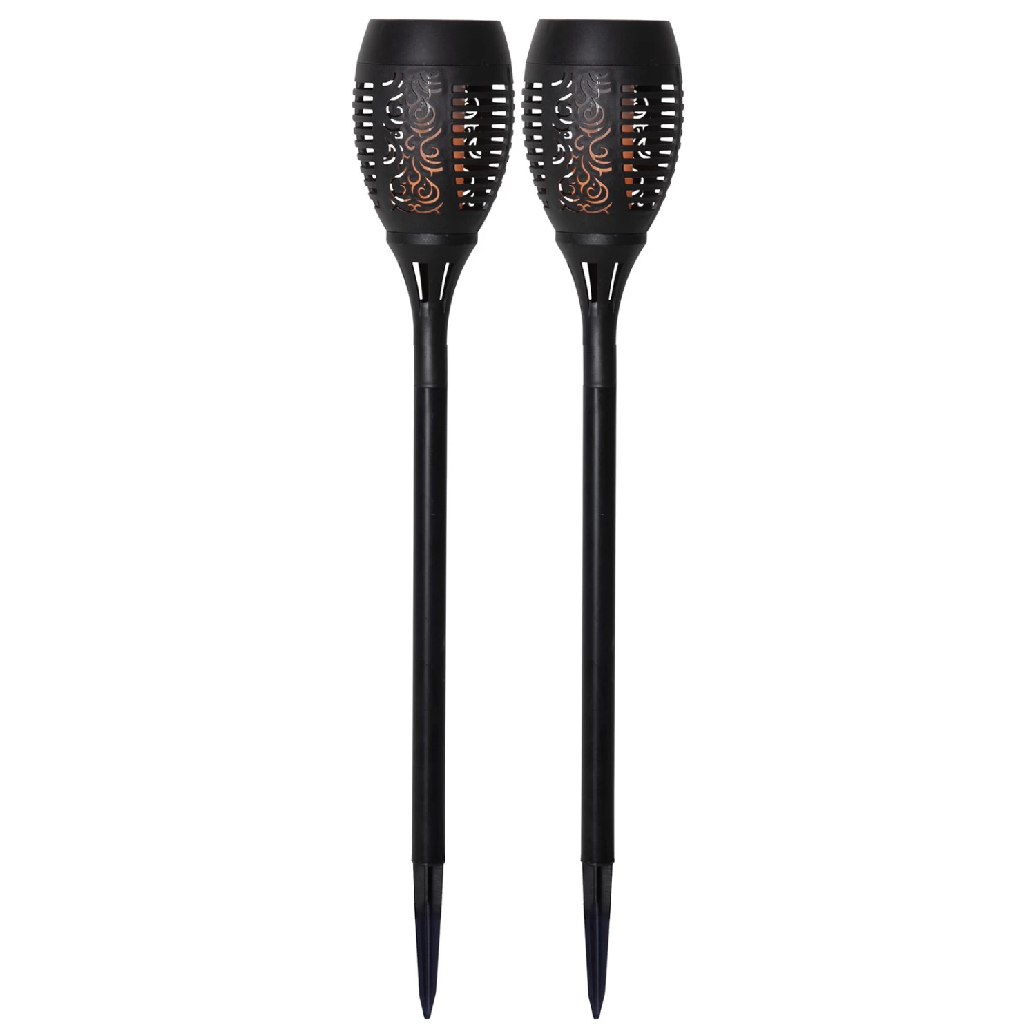 Lampe solaire noire à LED à pointe de terre Flamme avec effet de flamme en lot de 2