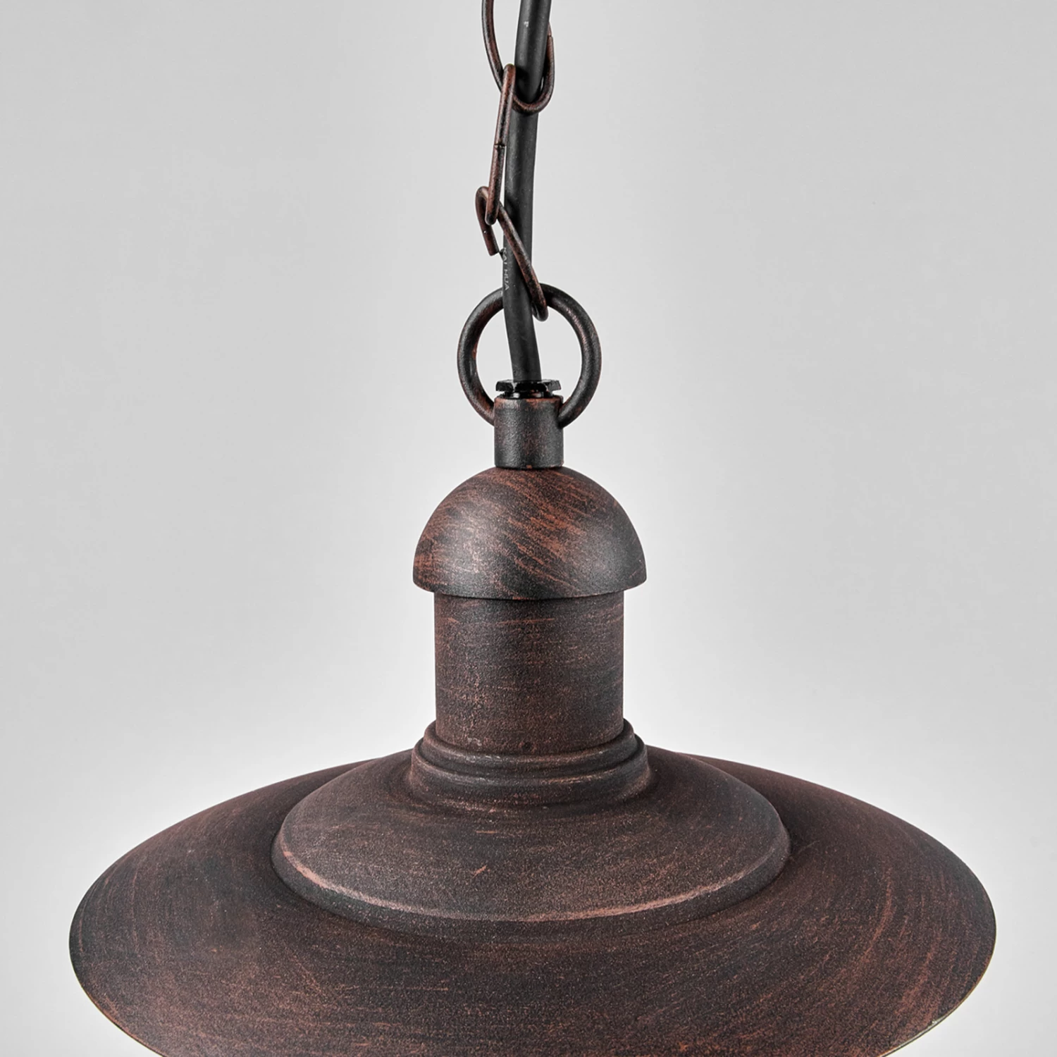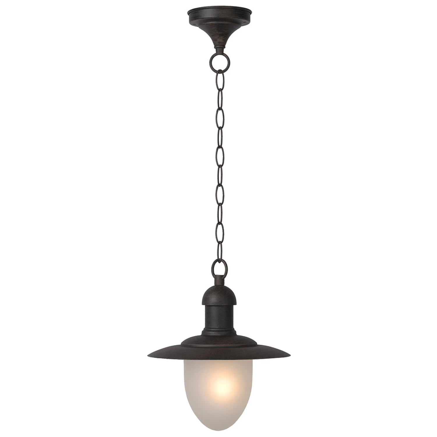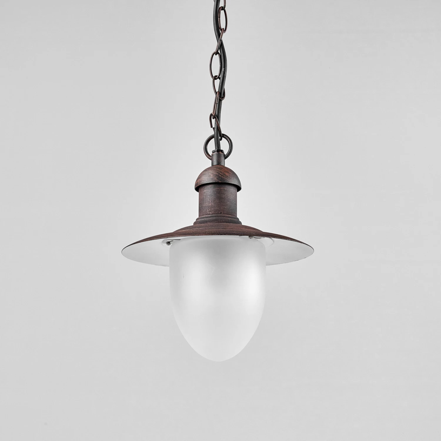 Lampe à suspendre Aruba au look nostalgique La lampe à suspendre Aruba est idéale pour l’extérieur et contribue à créer une atmosphère particulière sur la terrasse, par exemple. Le baldaquin et l’abat-jour sont reliés par une chaîne. L’ampoule E27 est enveloppée d’une ampoule en verre satiné.