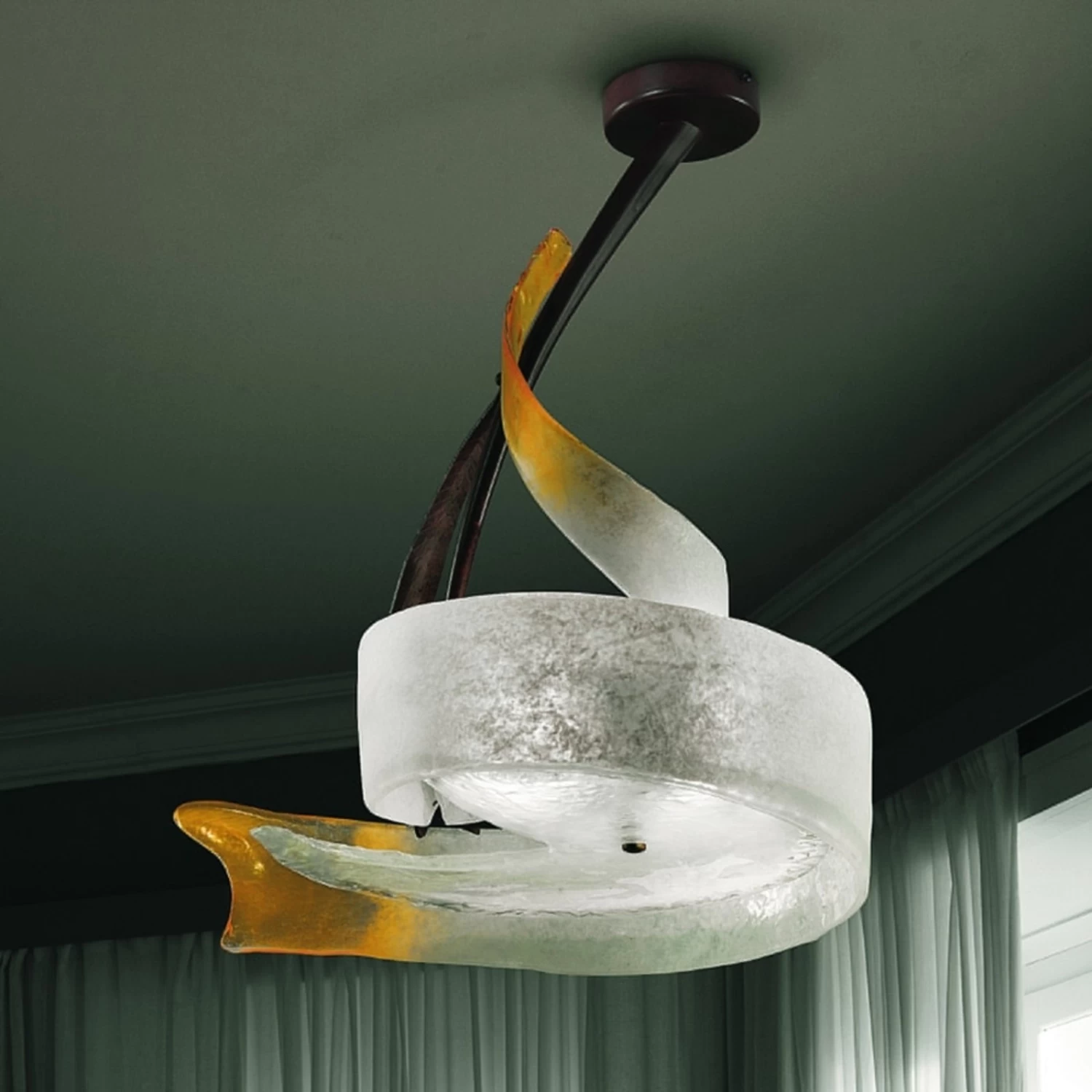 Plafonnier design italien CAPRI avec abat-jour en verre fait main ambre antique