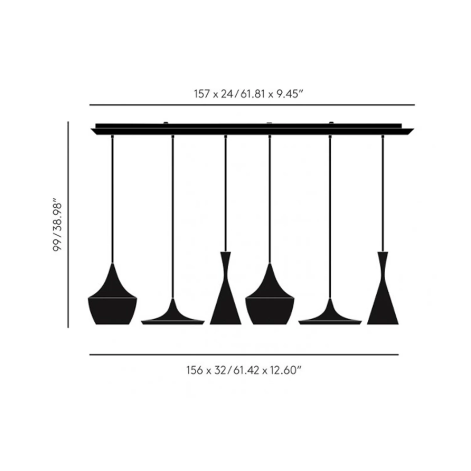Suspension LED à six flammes Beat Range Linear – fabriquée à la main